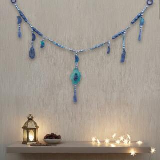 Add a soft, elegant Ramadan touch to your space with this 140 cm handmade Ramadan garland. Designed in calming blue and turquoise tones with pearl-like beads, crescent moons, and lantern charms, it creates a festive vibe that still keeps your décor clean and refined.