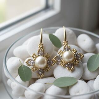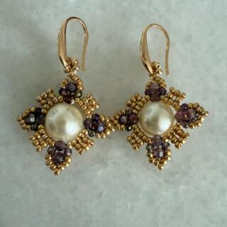 Handcrafted with a luminous pearl center and gold Miyuki Delica beads, these earrings offer timeless elegance with a refined, luxurious finish.