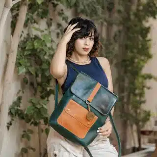 GENUINE LEATHER BROWN – BLUE UNISEX BACKPACK BAG