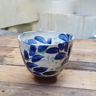 سلطانية خزف يدوي الفيوم بالرسومات نباتية من الخارج.