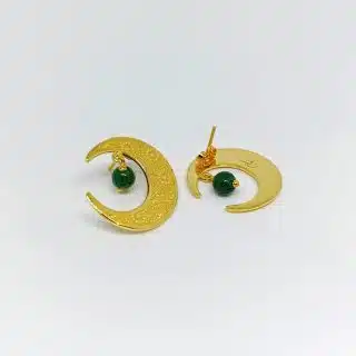 مصنوع يدويًا من النحاس المطلي بالذهب، ومُزين بأحجار العقيق الخضراء.