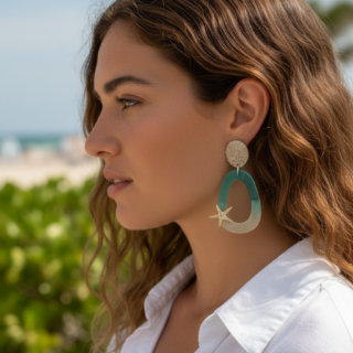 Capture the raw beauty of the ocean with these striking statement earrings, expertly handcrafted to mirror a tropical shoreline. These are not just ocean-inspired; they are made from the sea itself.