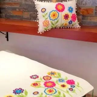 Handmade embroidery runner 120×50 cm in fairy design patterns. Available in fabric color ( off white & Jens & beig & Grey)
