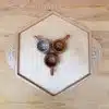 الوصف : صينية سداسية خشب زان و كونتر بإطار خشب و يد دائرية تطعيم صدف.