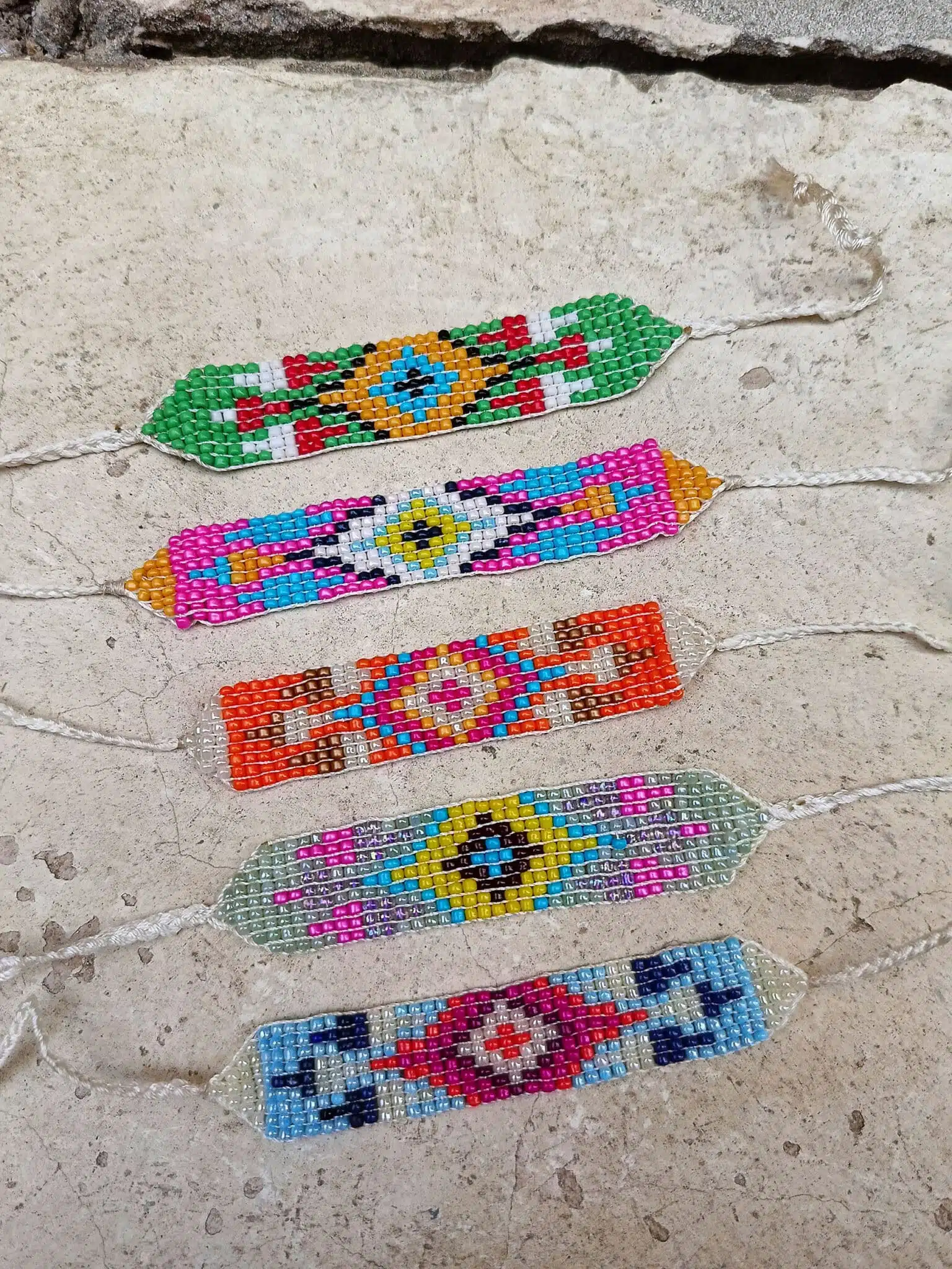 الوصف : حظاظه خرز تصميم اشكال هندسية بالخرز تنفيذ يدوي .