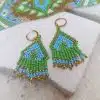 الوصف: حلق خرز تشيكي شغل إبرة بموتيفات هندسية مستوحاة من التراث السيناوي لمنطقة نويبع.