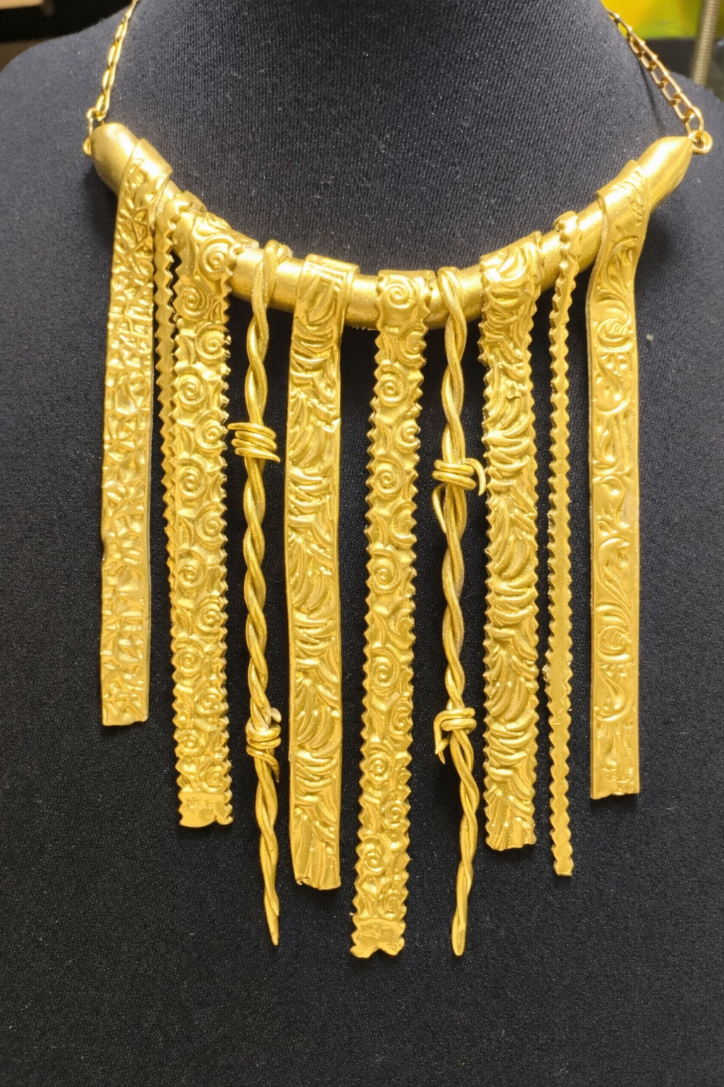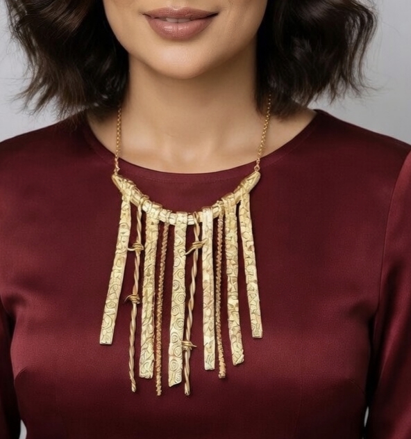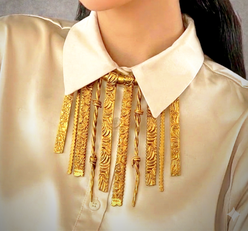 كوليه مزخرف بتصميم فني جريء، مستوحى من جمال النقوش والزخارف الكلاسيكية.