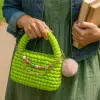 شنطة كروشية بلون فسفوري مزين بالخرز الملون و السلاسل .