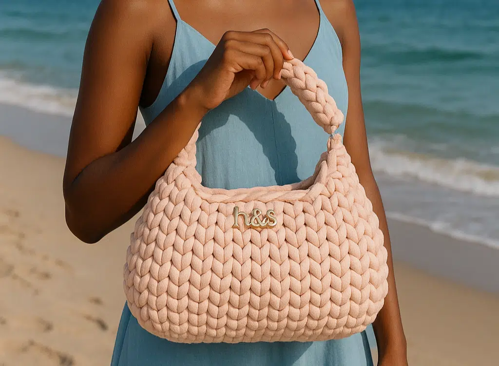 شنطة كروشية هاندميد لون وردي .