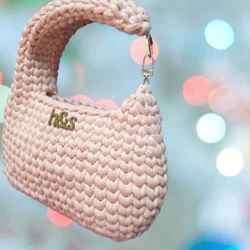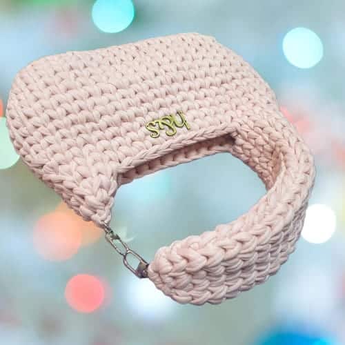 شنطة كروشية هاندميد لون وردي .