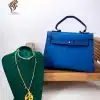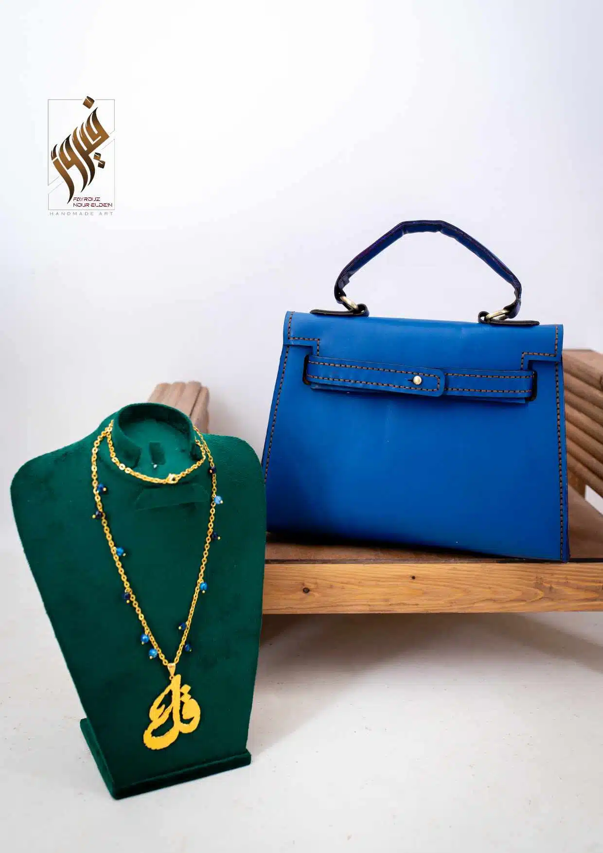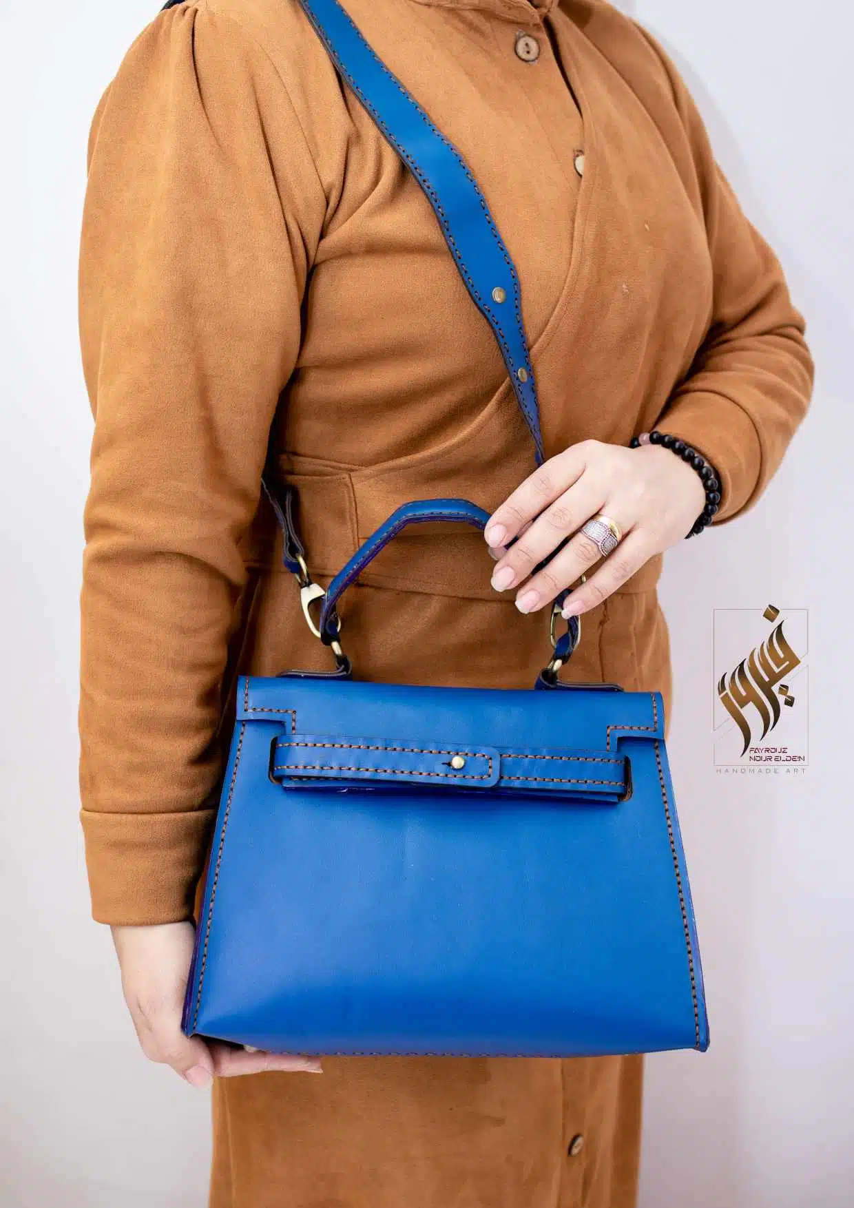 مرصعة بأحجار العقيق اليماني الأزرق بنفس درجة لون الشنطة، لإكمال إطلالتكِ بأسلوب أنيق ومتكامل