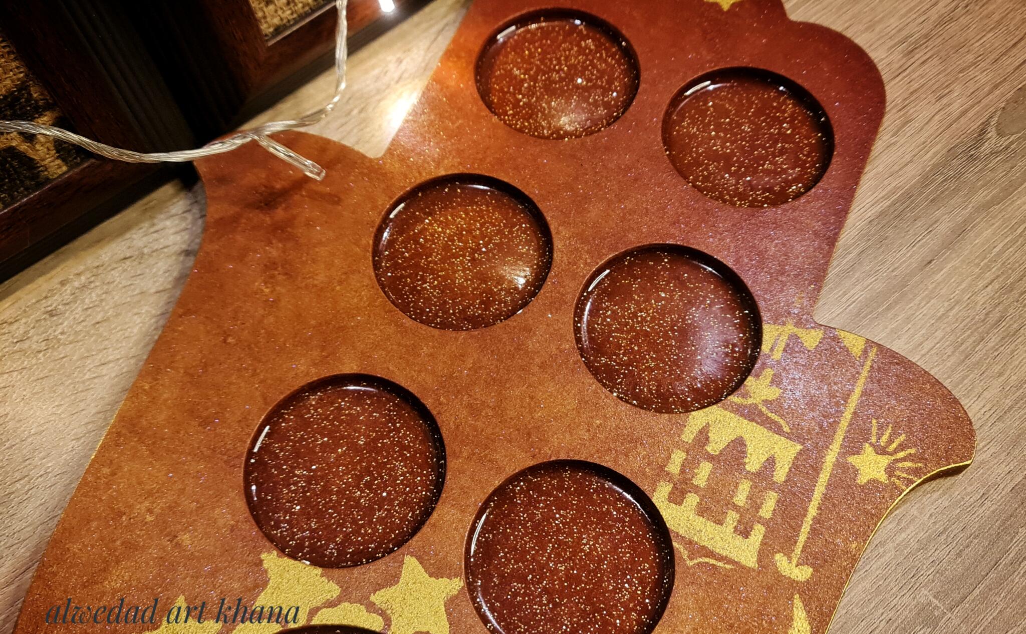صينية باستايل عربي على شكل كف مزينة بالريزن والزخارف العربية