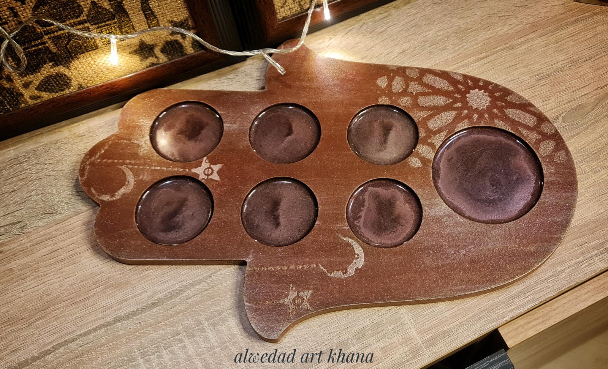 صينية باستايل عربي على شكل كف مزينة بزخارف عربية مع اضافة الريزن