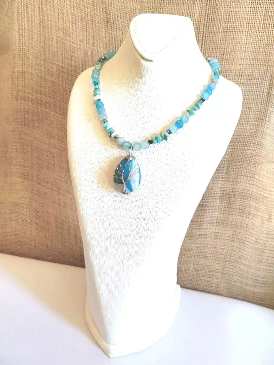 عقد من العقيق ودلاية من العقيق المشغول بالنحاس الابيض