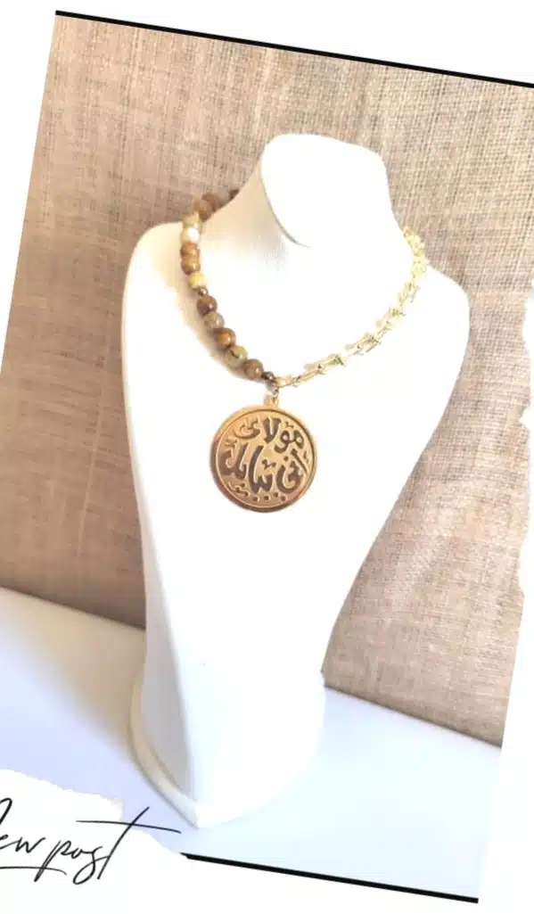 Be the first to review “عقد من العقيق ودلاية من النحاس المطلي”