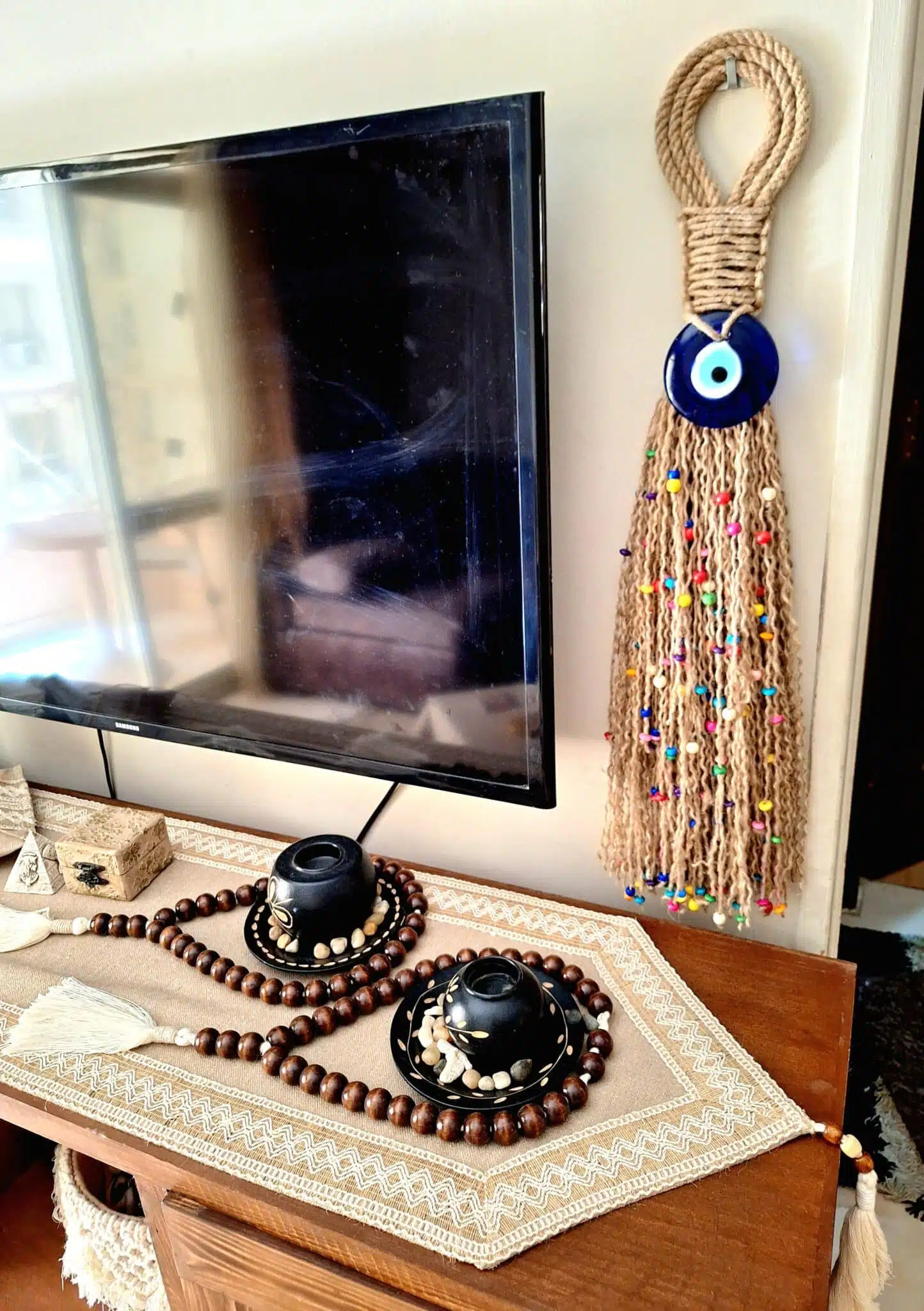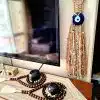 معلقه بوهو ستايل خيش مع عين زرقاء من الزجاج طول ٥٠ سم
