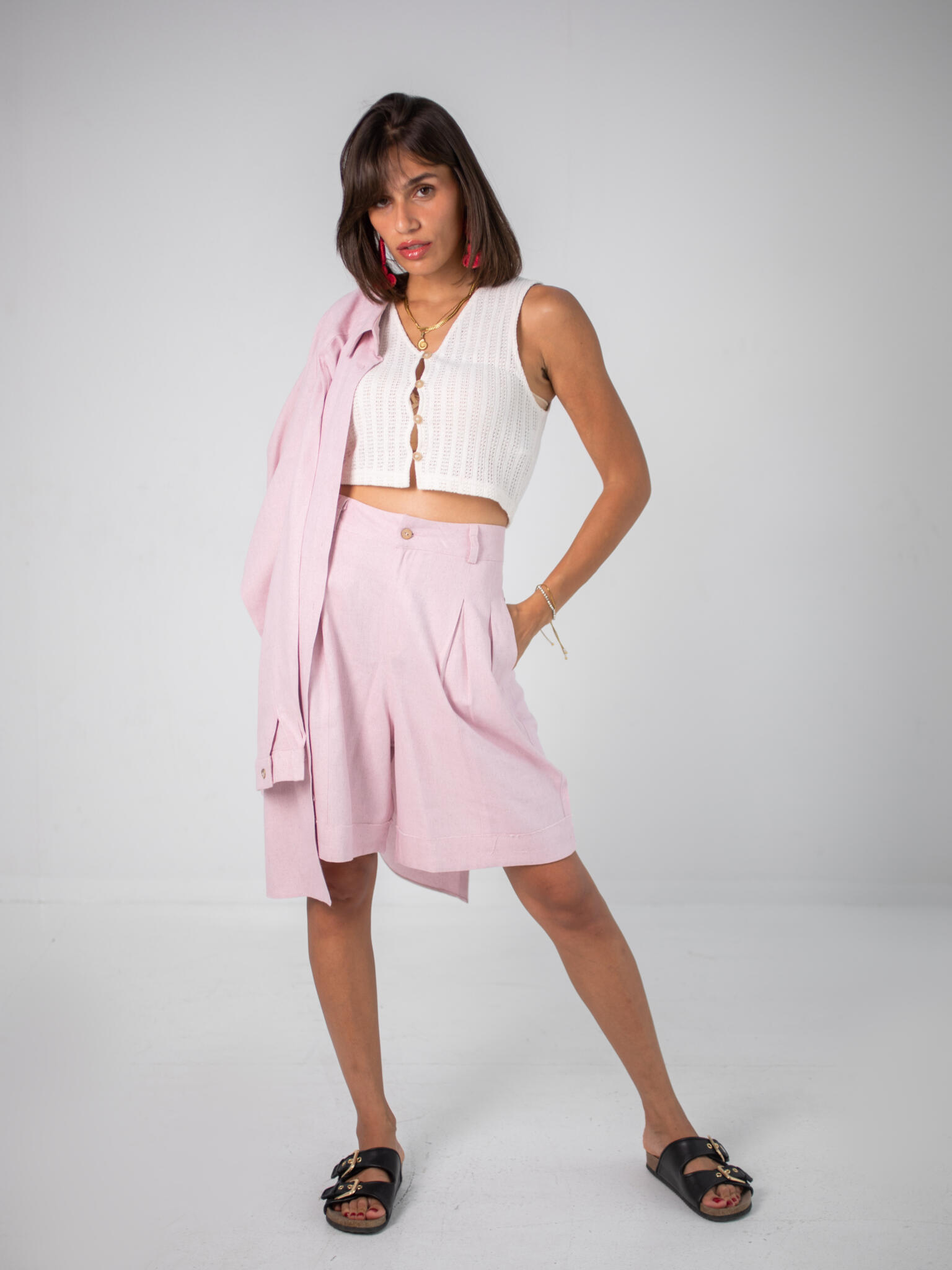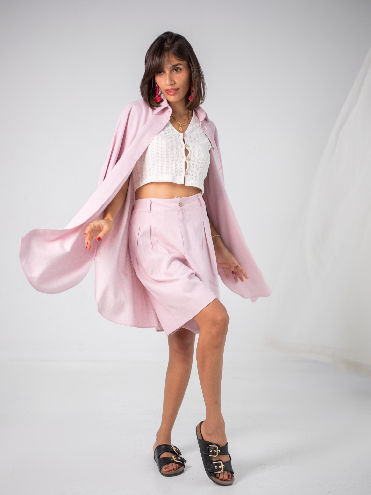 100% pure linen pink lilac short 🩷 very chic , unique and trendy for summer
