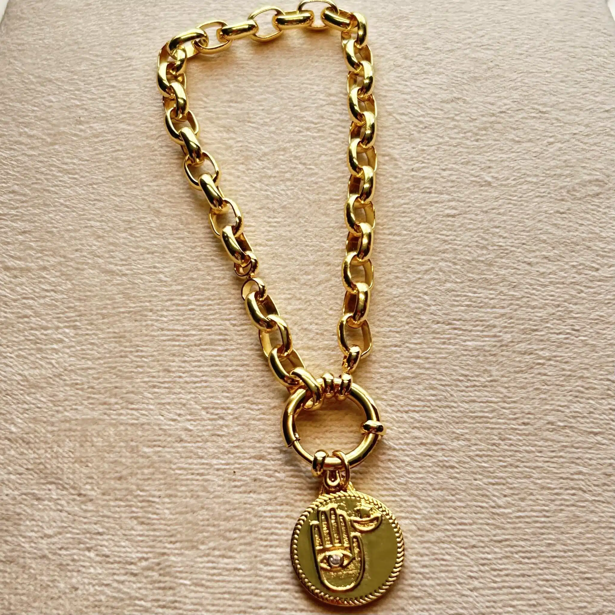 18 k gold plated brass bracelet with fatima hand charms