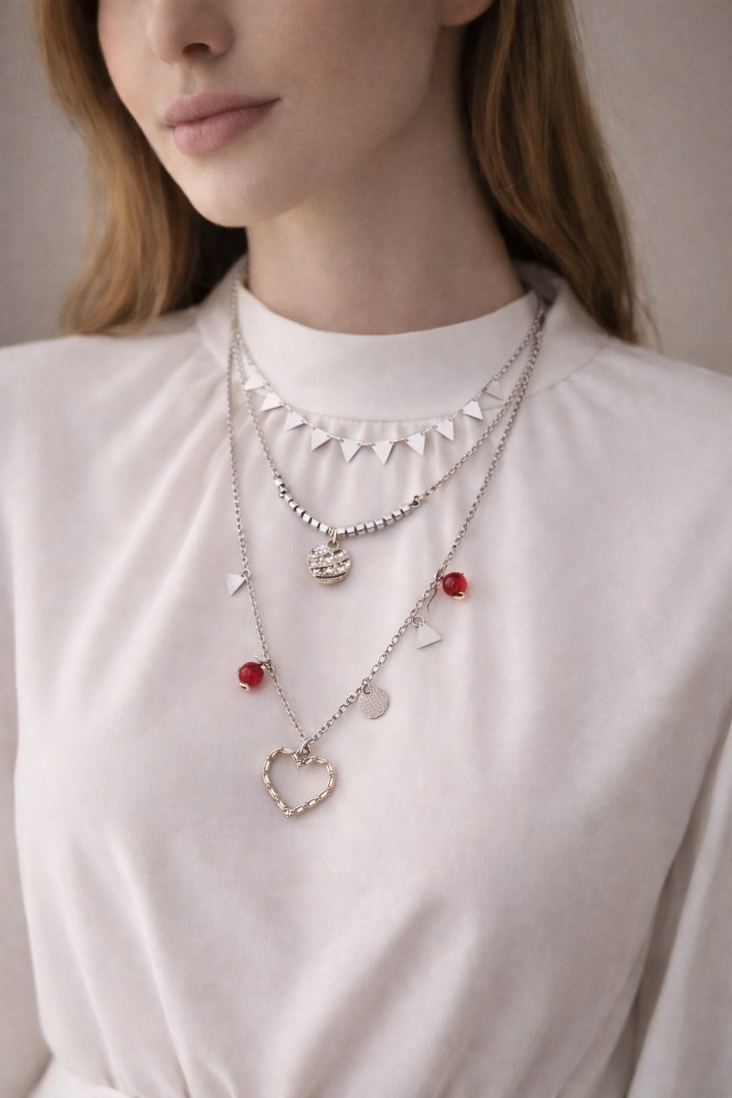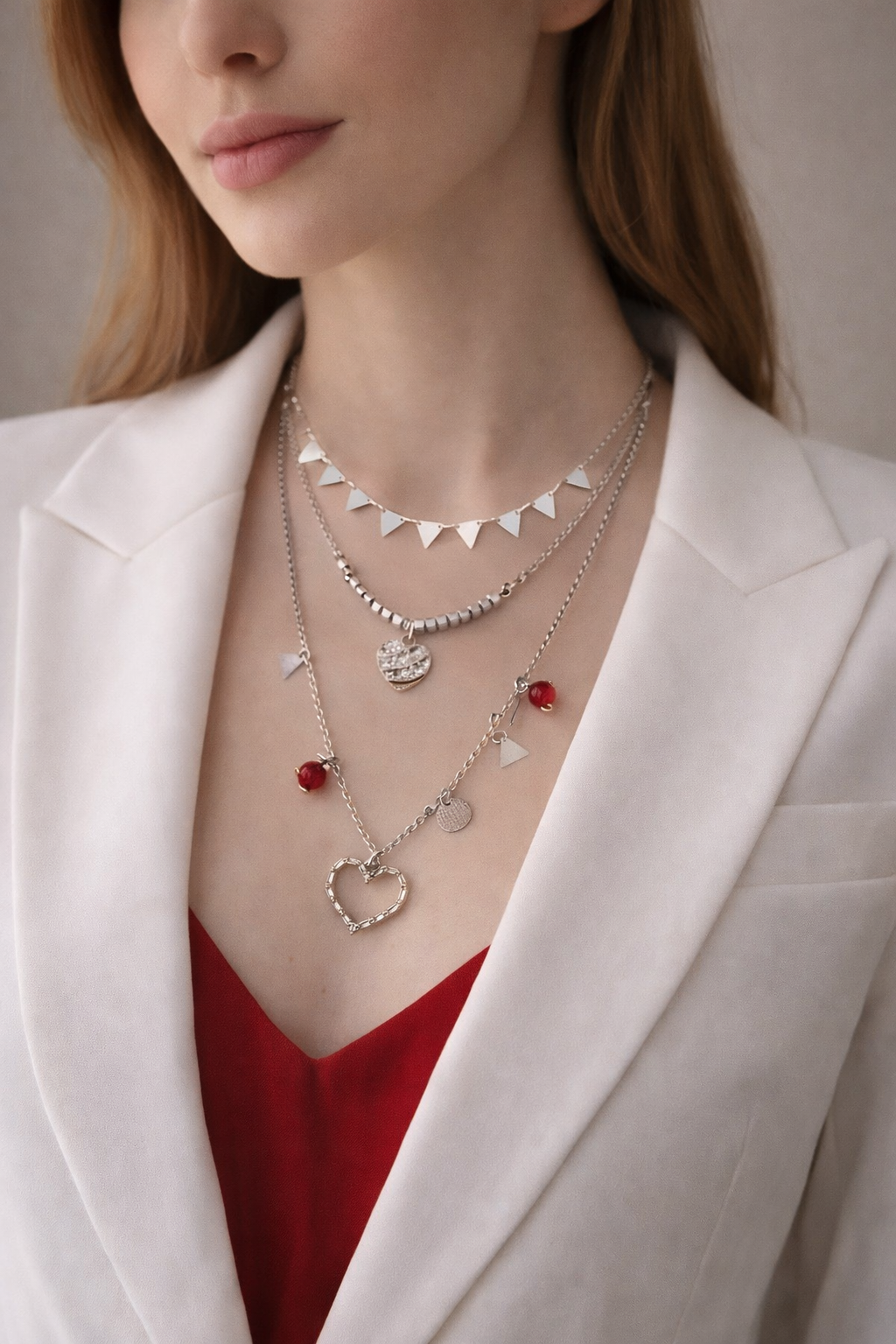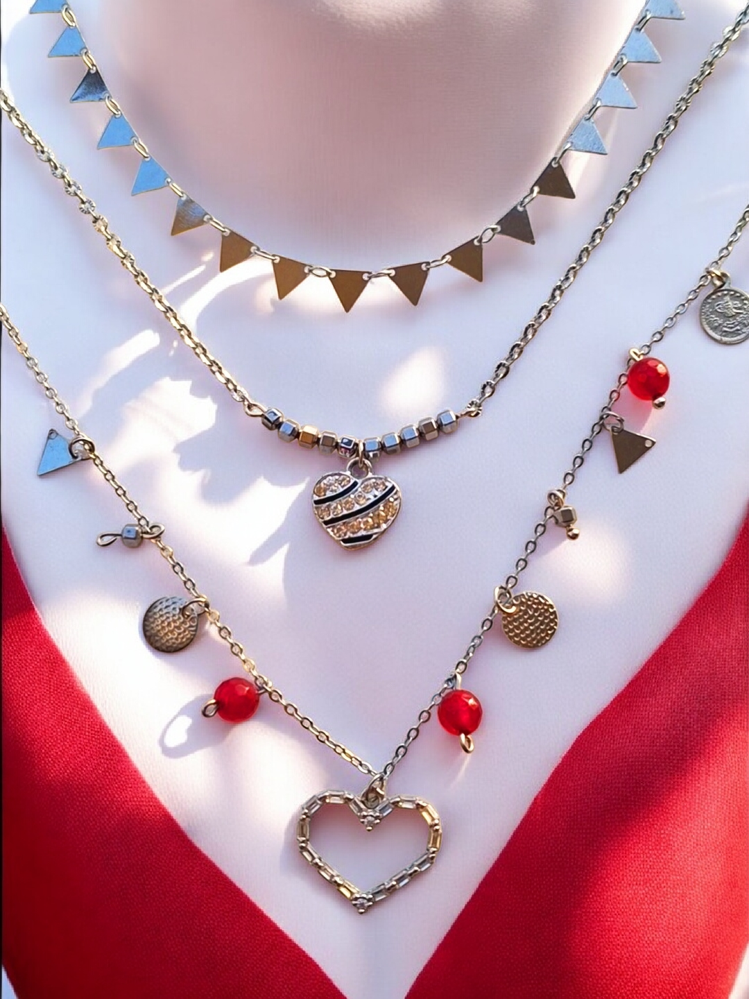 3-layered red heart necklace