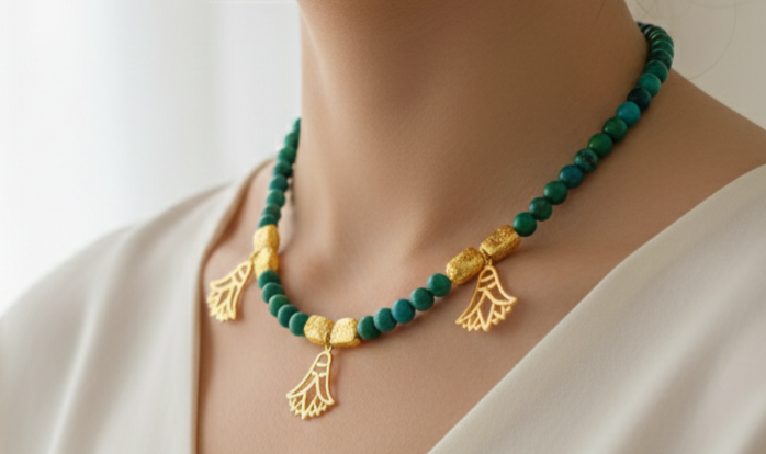 3 gold plated 18k necklace with jasper stones