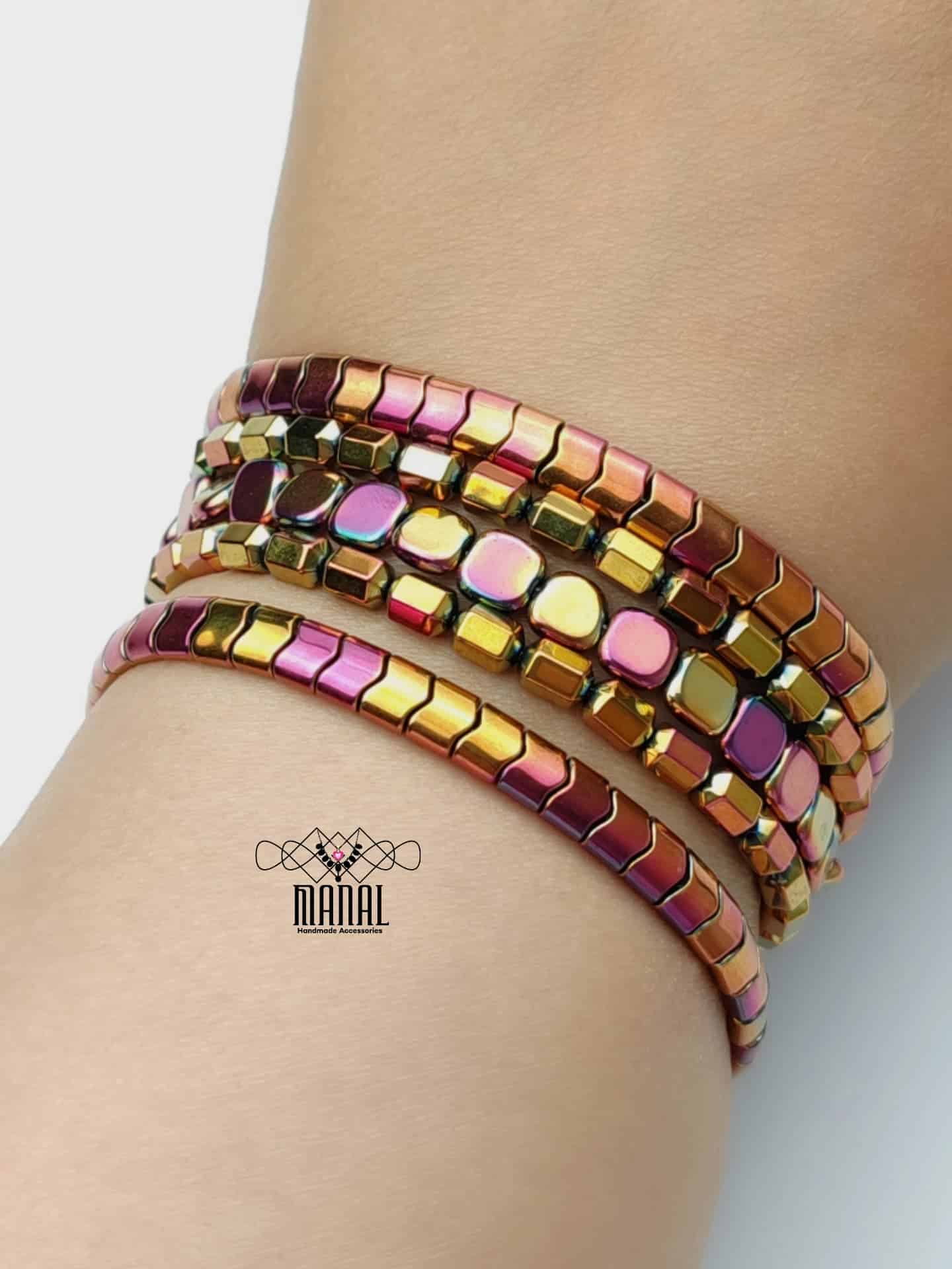 Be the first to review “A set of bracelets made of hematite stones in different shapes”