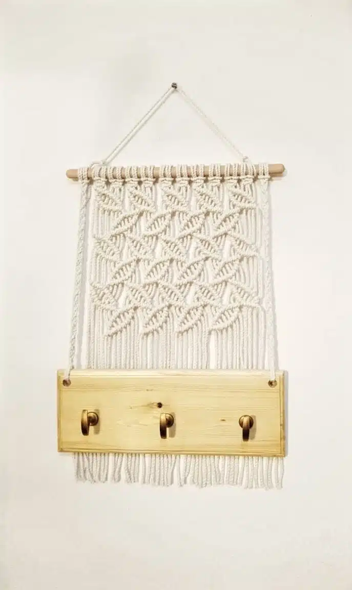 Macrame with wooden shelf key holder
