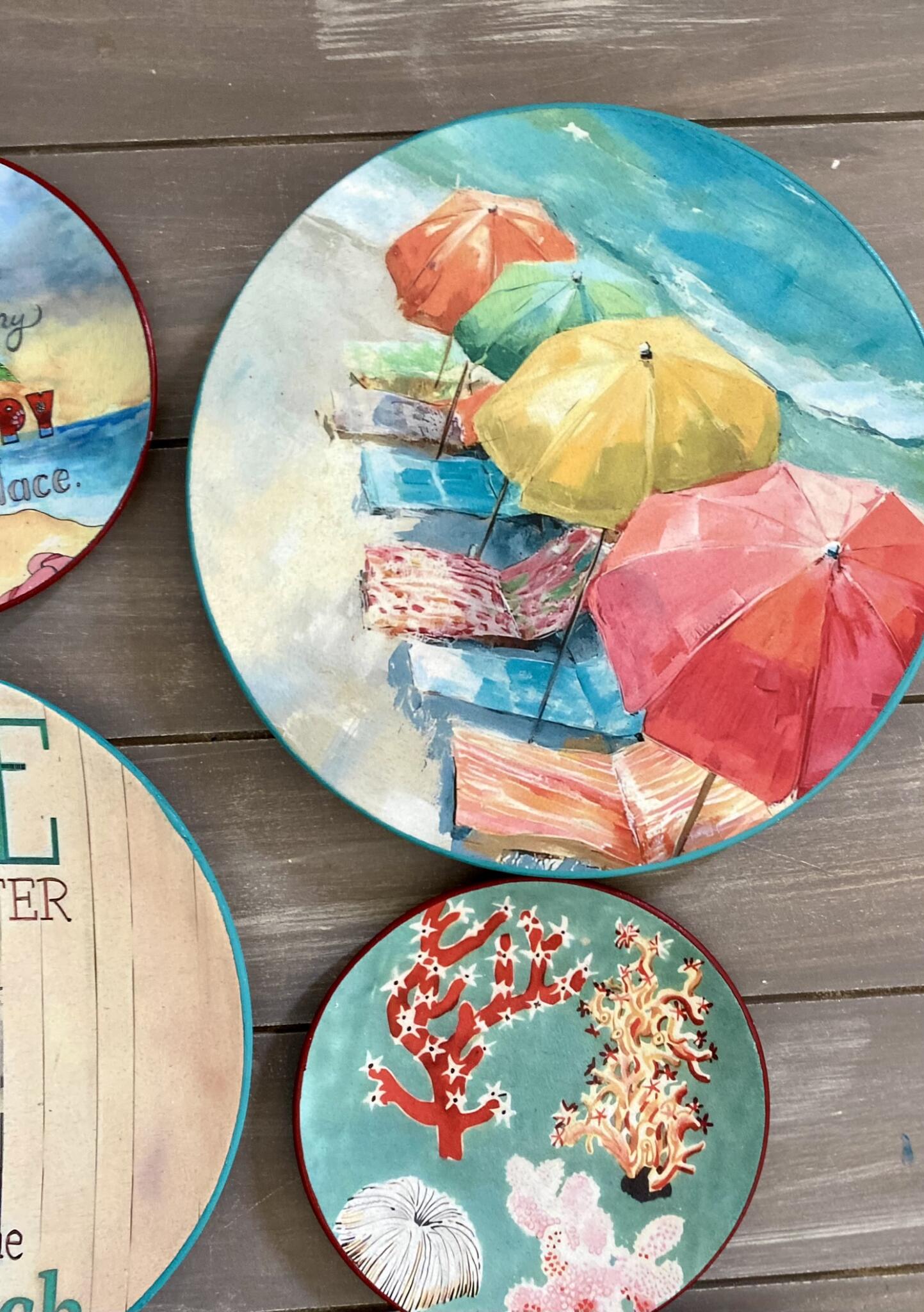 Decoupaged wall decor in retro umbrella theme