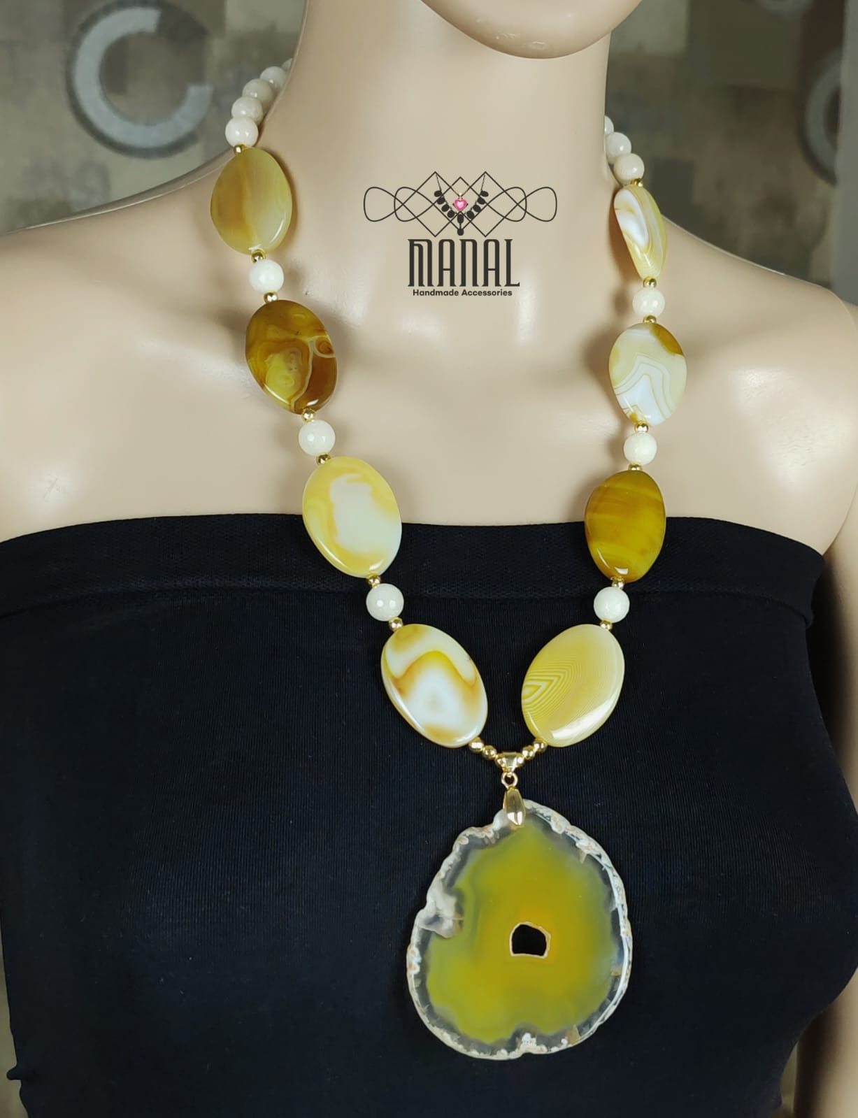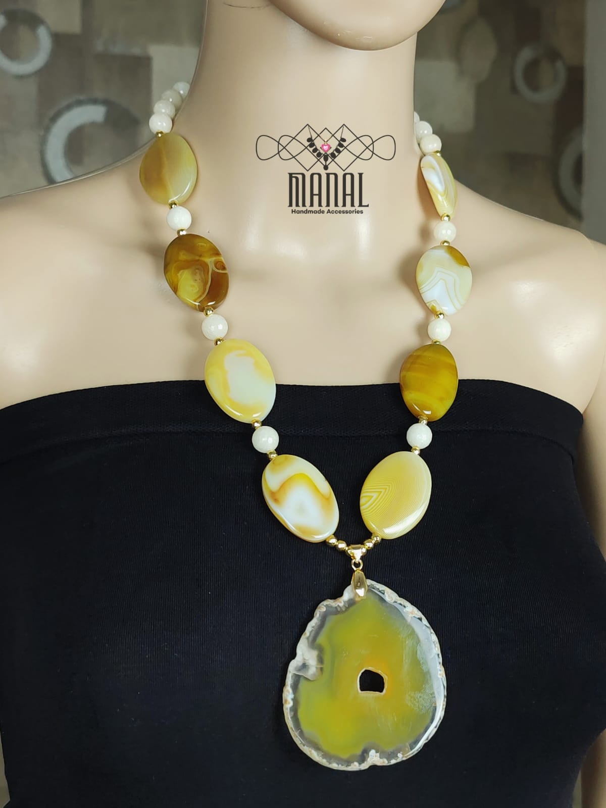 عقد من احجار العقيق بفواصل حجر هيماتيت ودلايه شريحه من احجار العقيق