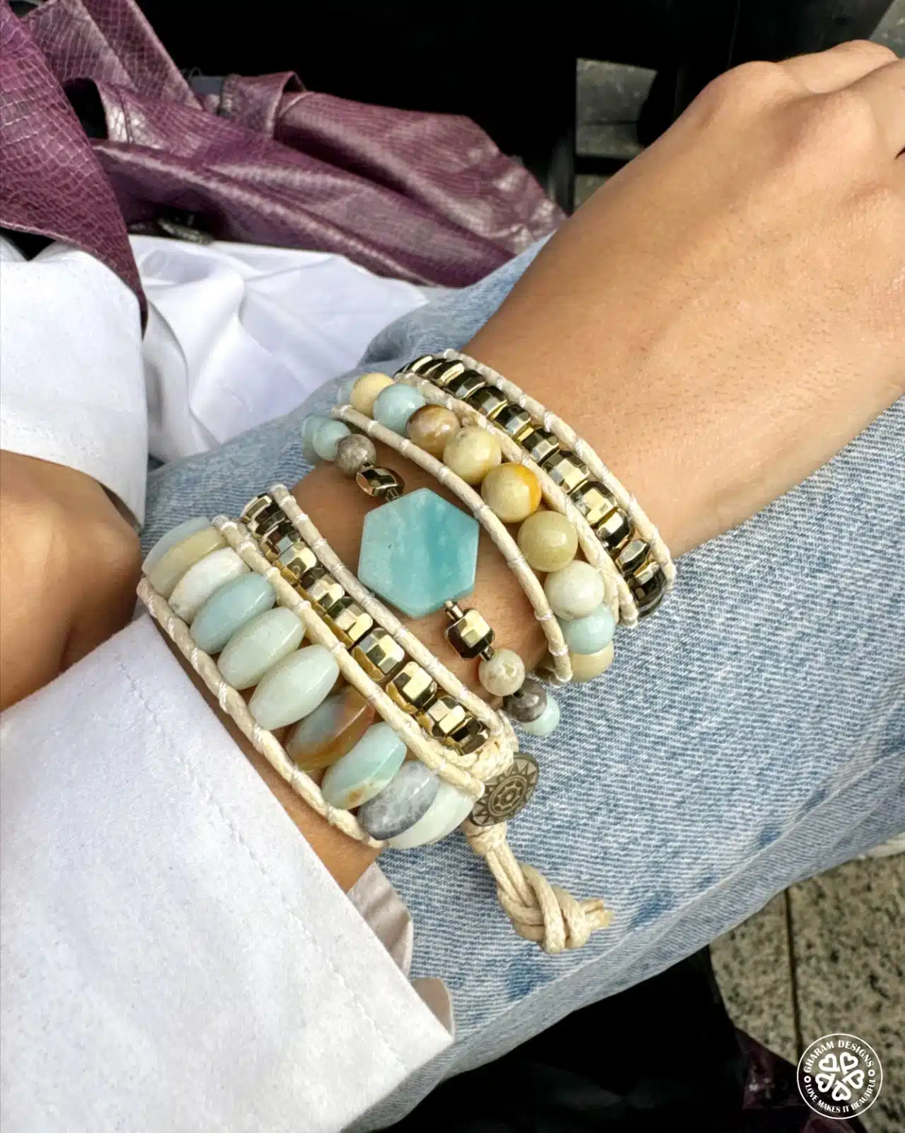 Gharam Macrame bracelet mixed stones from amazonite and Hematite