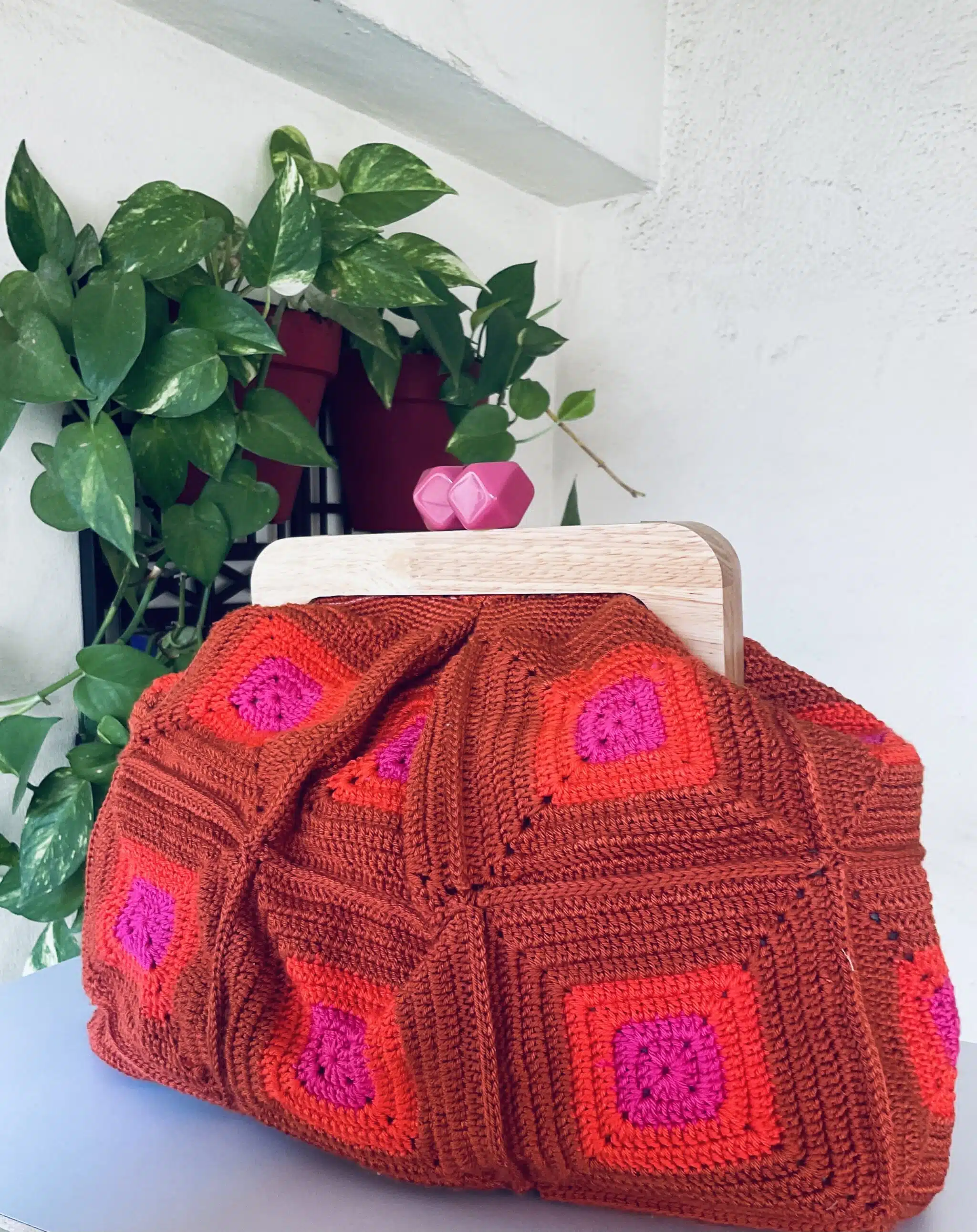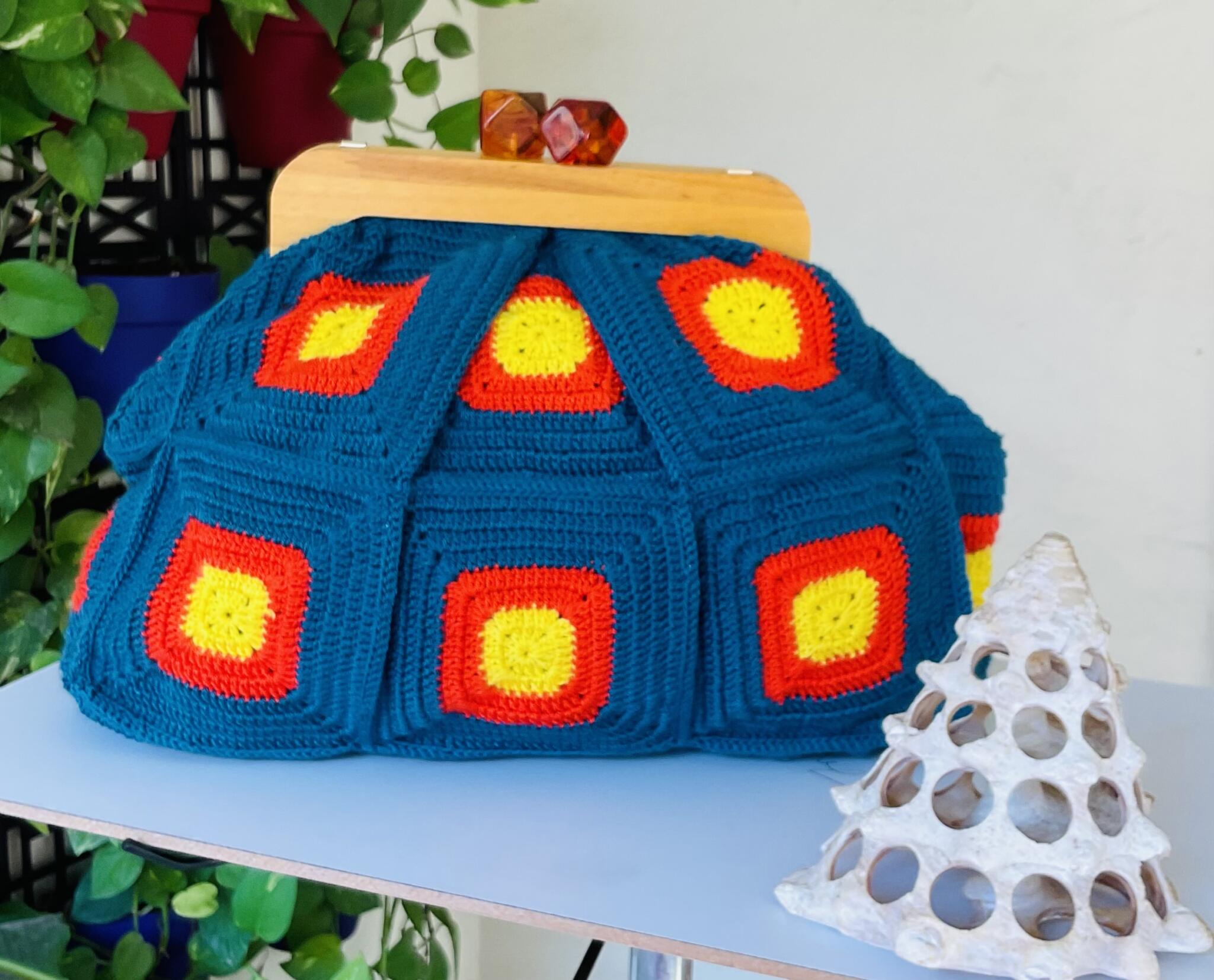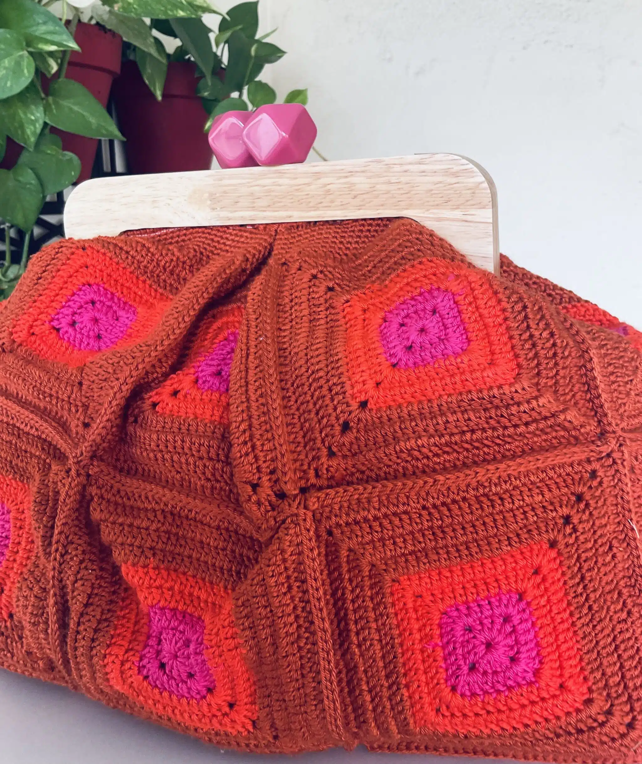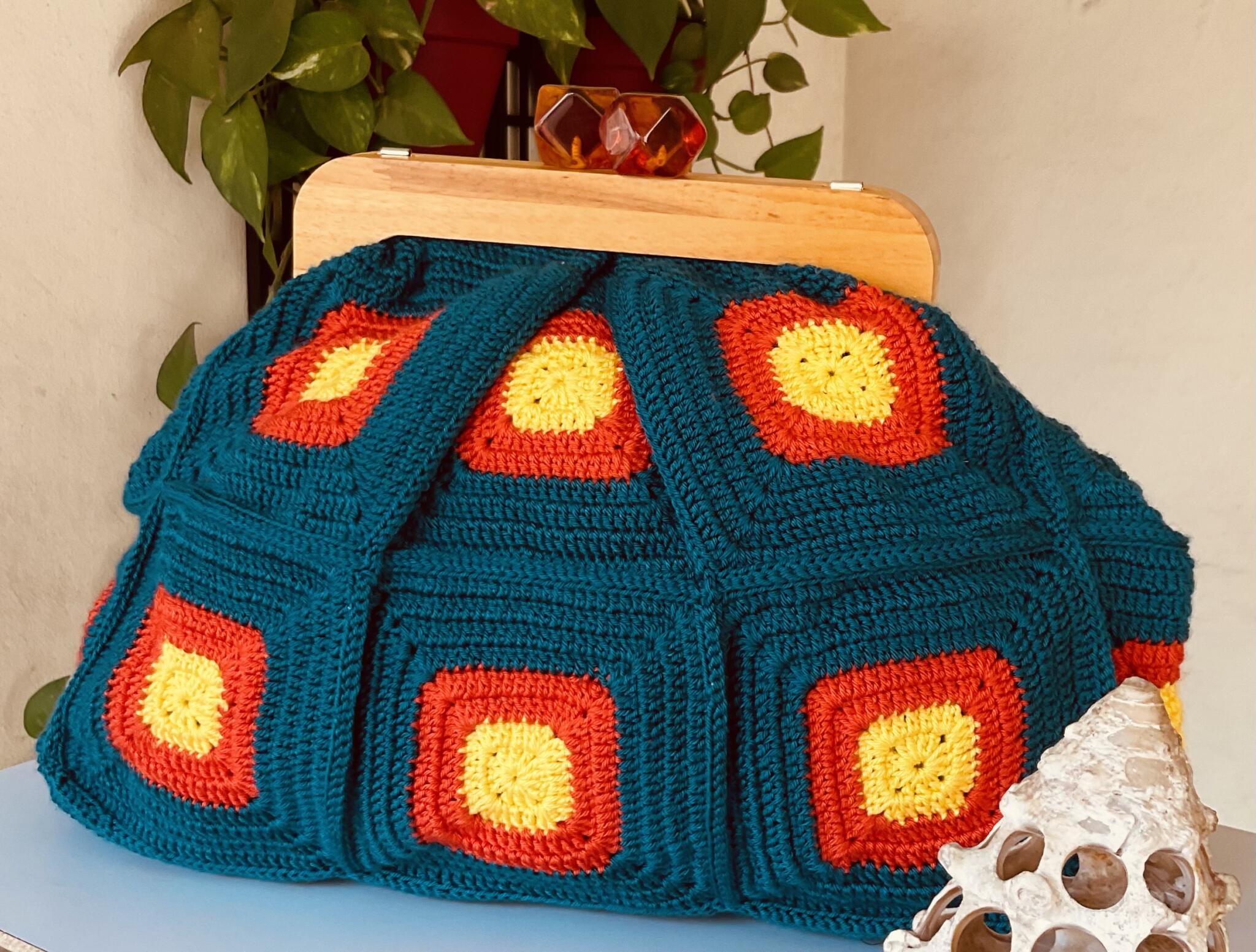 A stunning crochet clutch that turns heads with its vibrant colors and gradients!