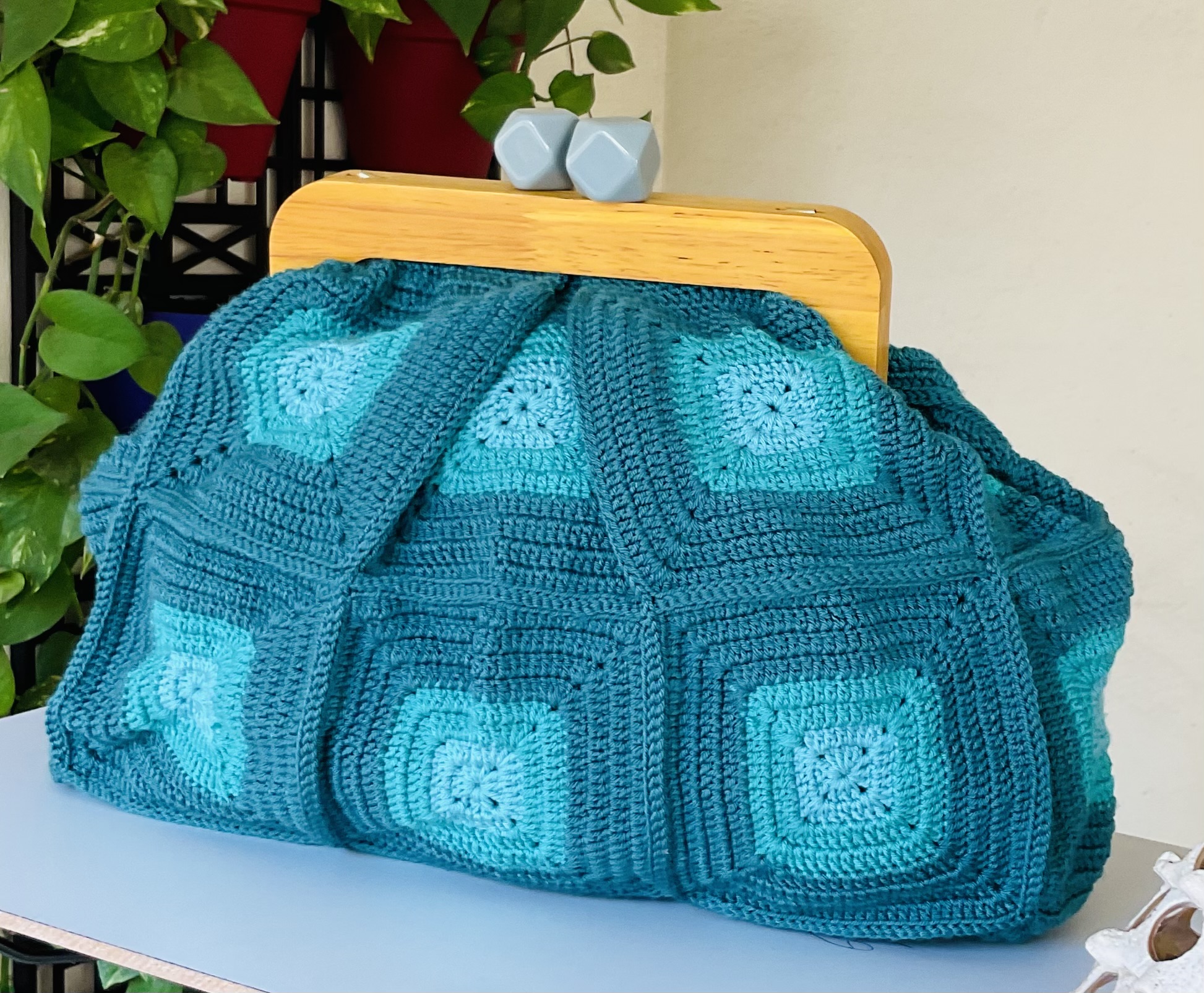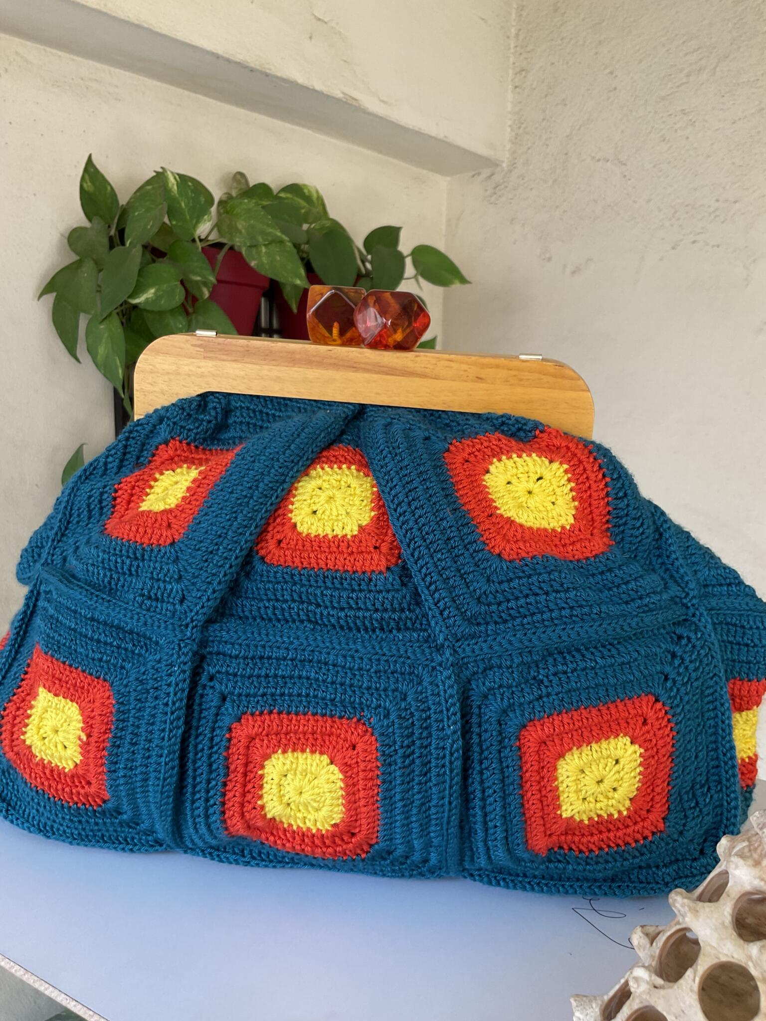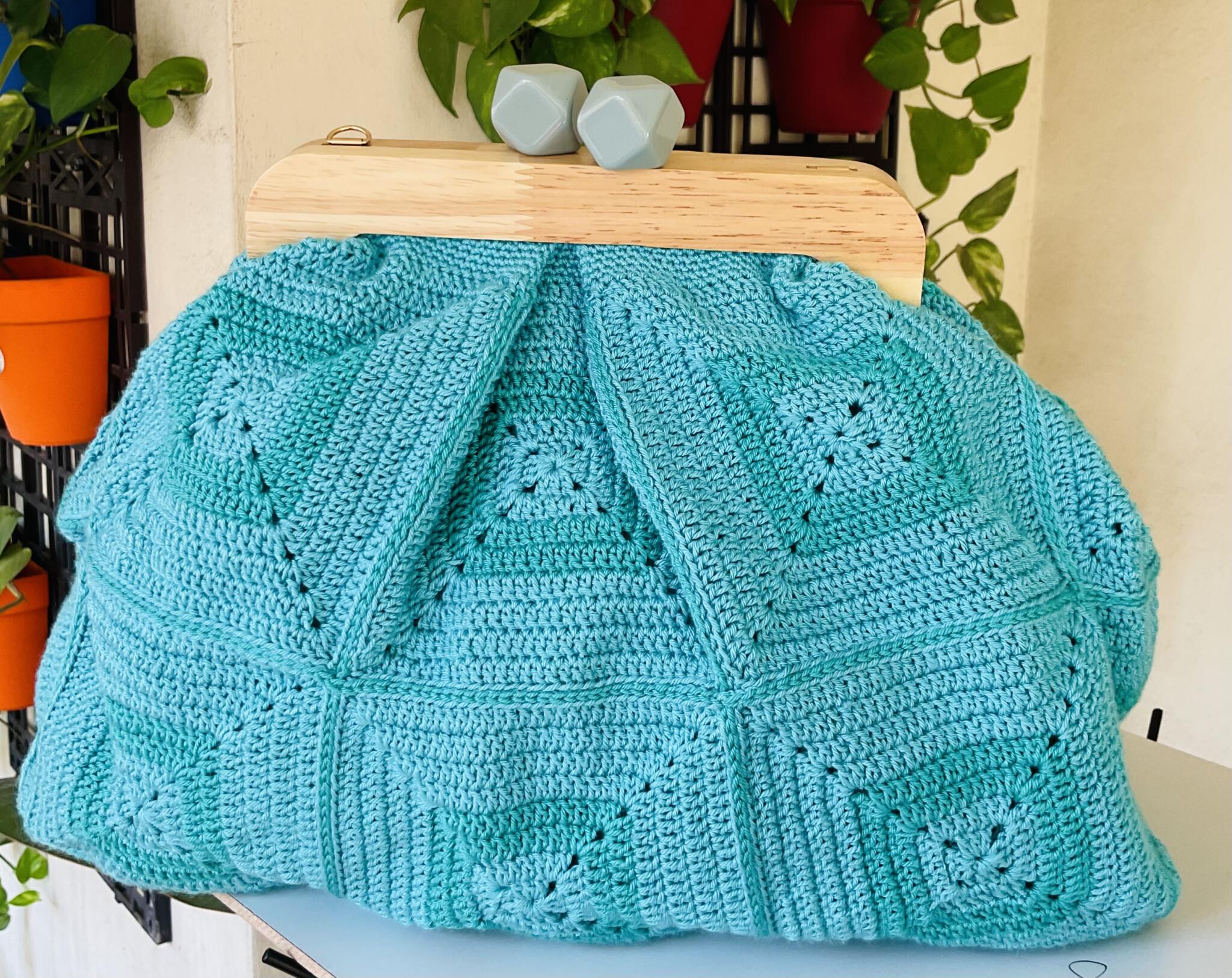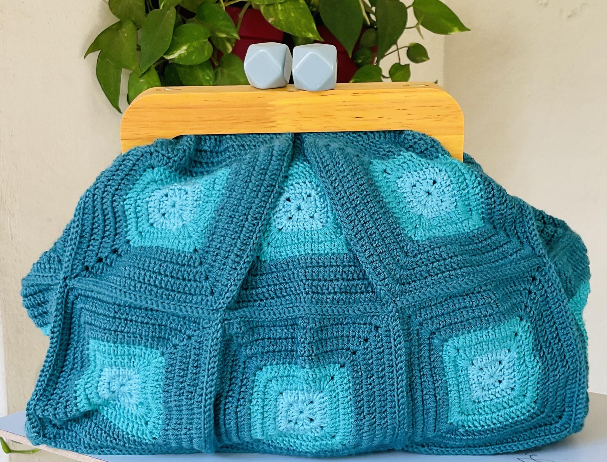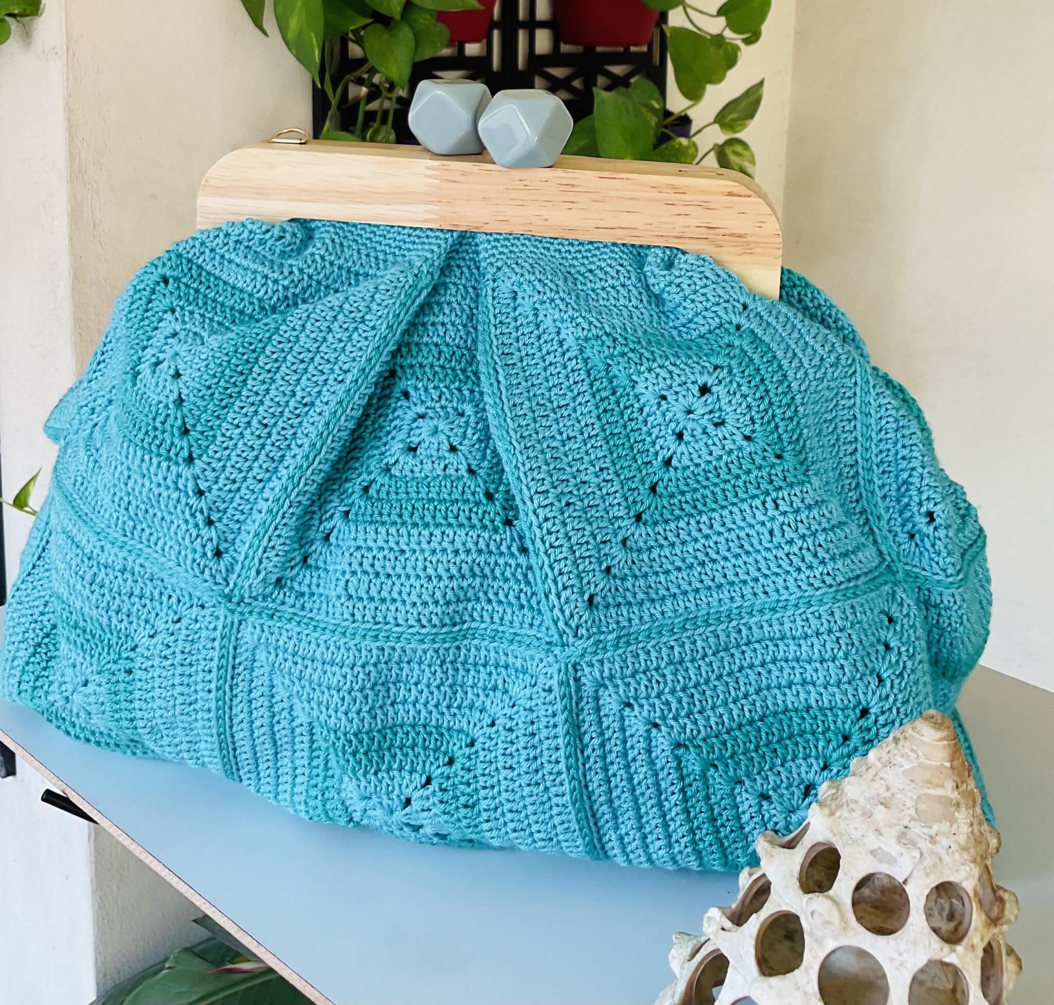 A stunning crochet clutch that turns heads with its vibrant colors and gradients!