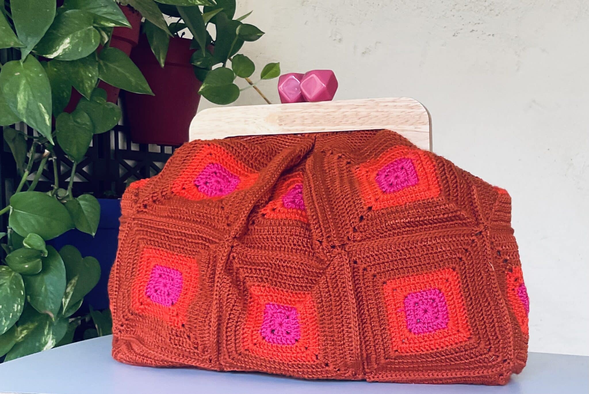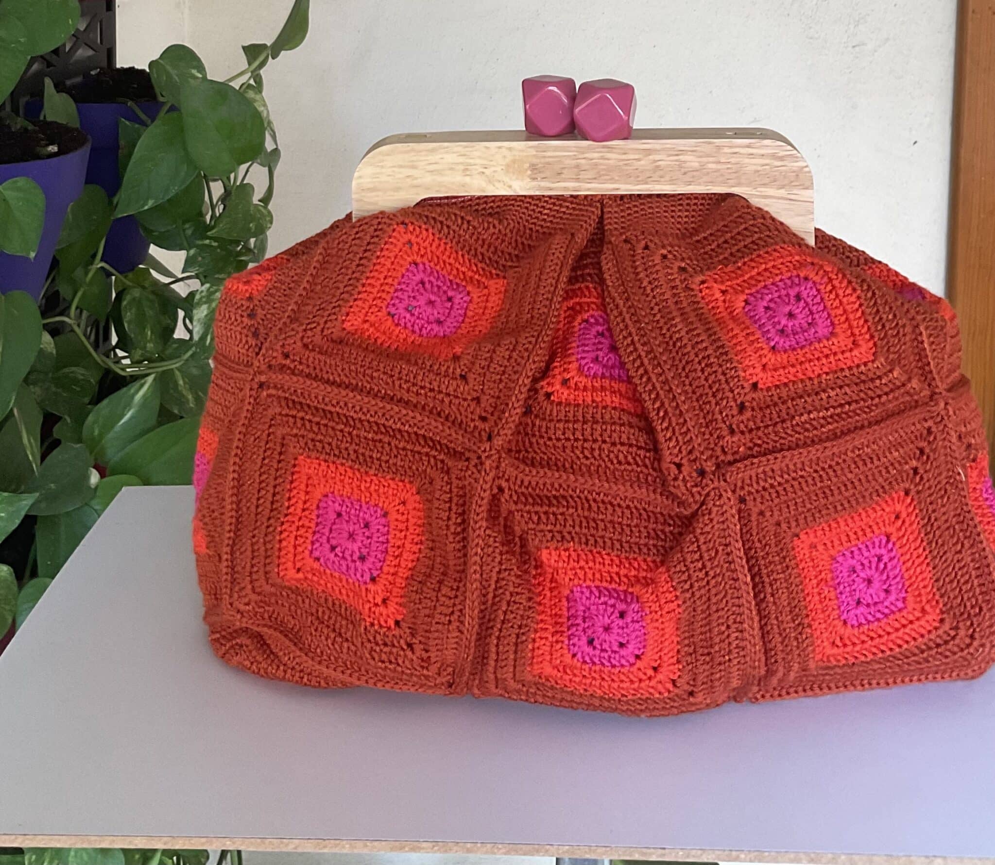 A stunning crochet clutch that turns heads with its vibrant colors and gradients!