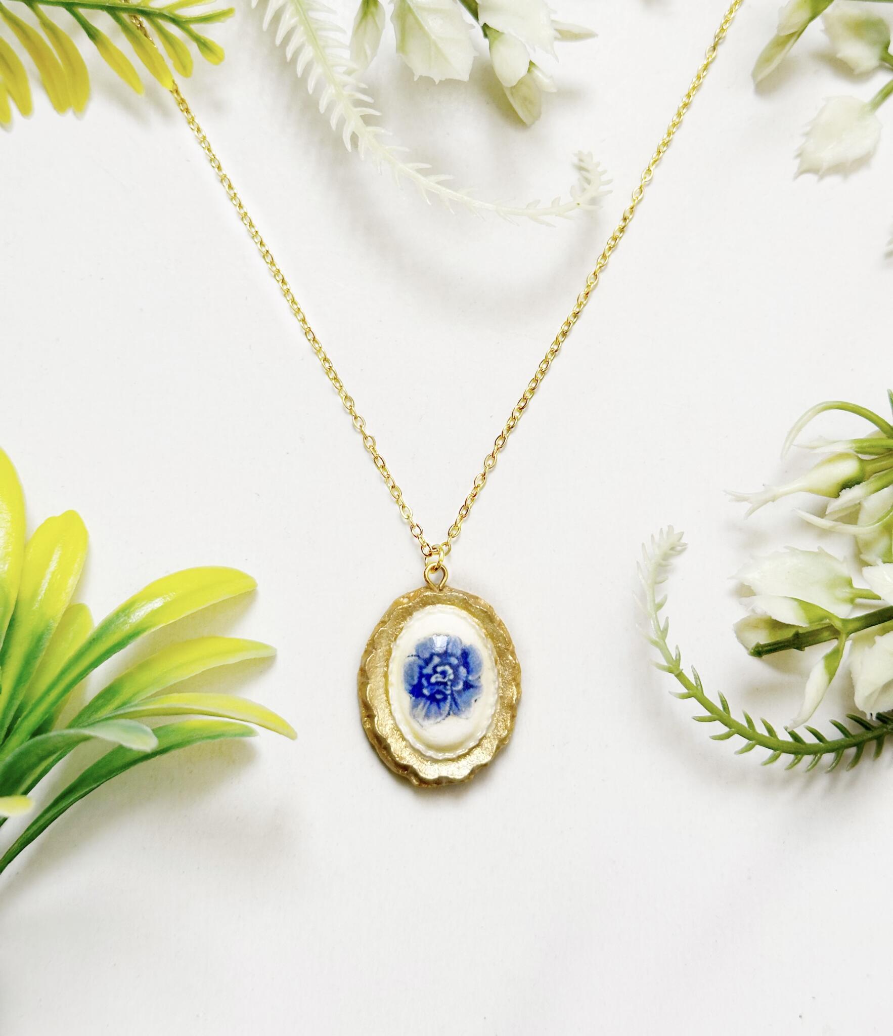 Handmade Ceramic Pendant comes with a 45cm Stainless Steel chain.. More than just jewelry, it’s a piece of art designed for the old souls who find beauty in the elegance of the past.