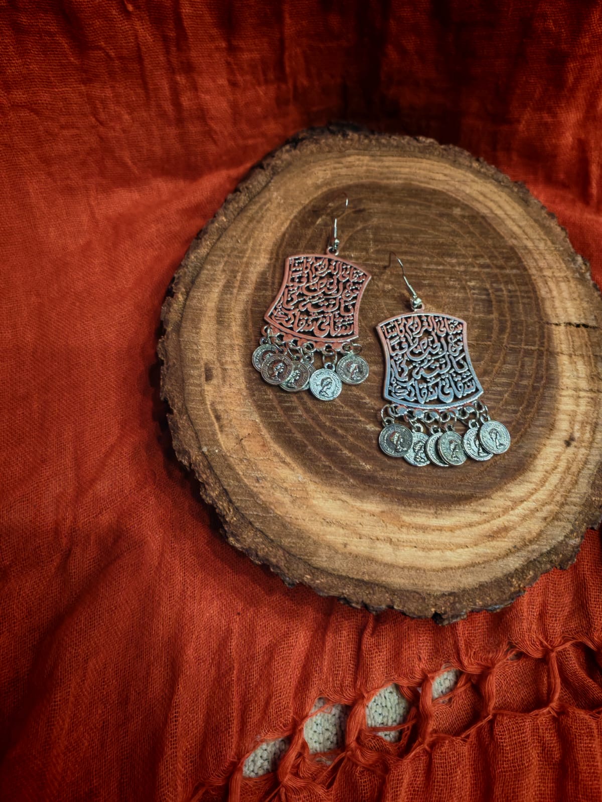 حلق تصميم عربي كبير الحجم مع عملات معدنية صغيرة