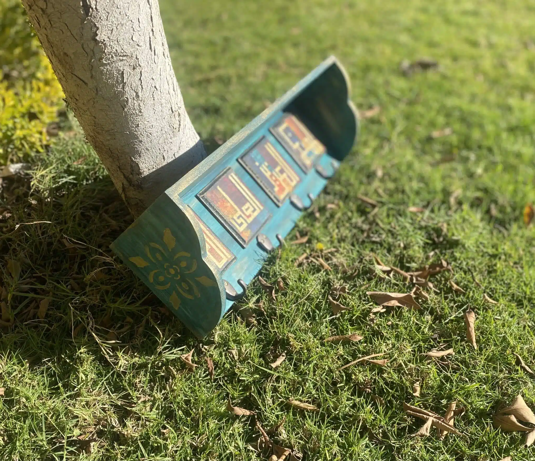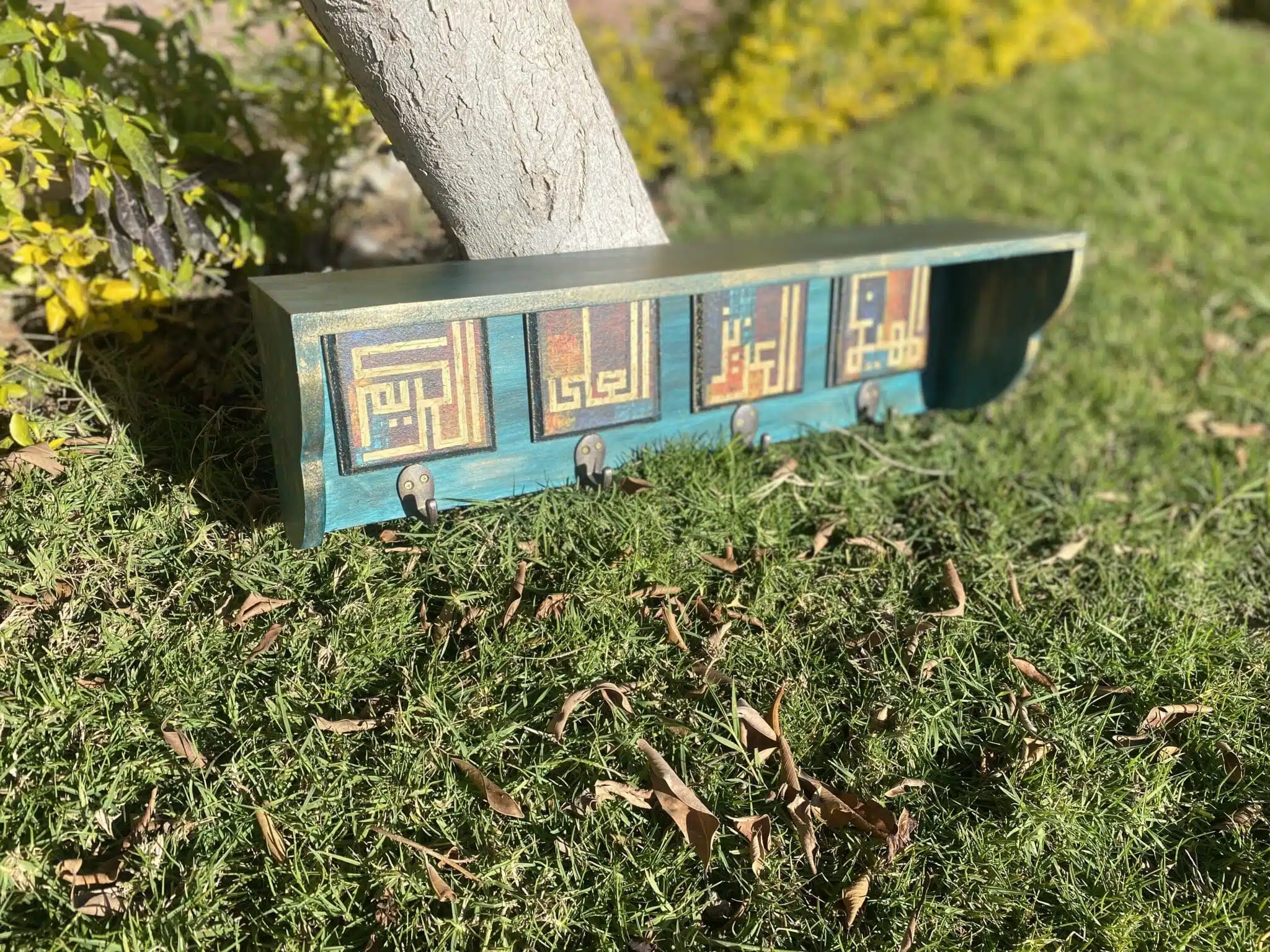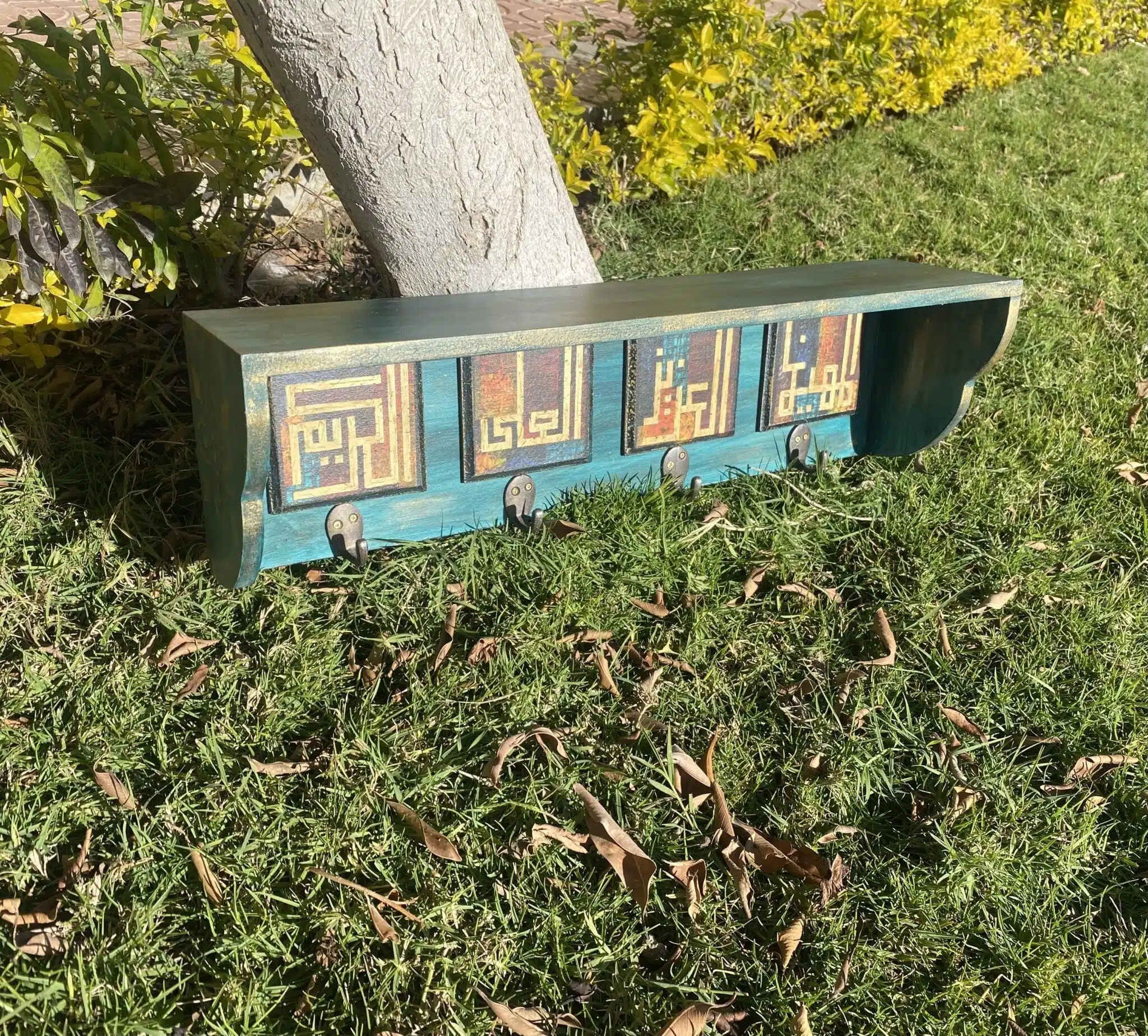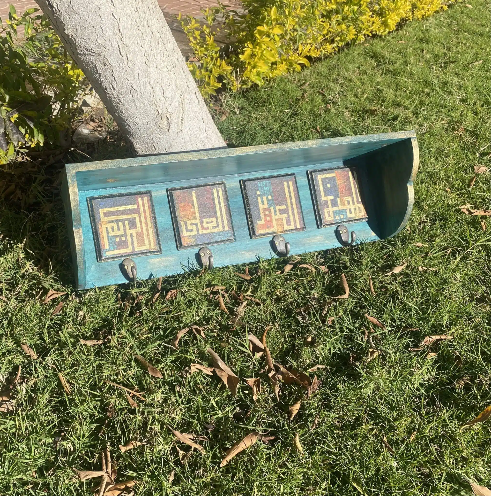 Wooden hanger with shelf with Names of Allah اسماء الله الحسني