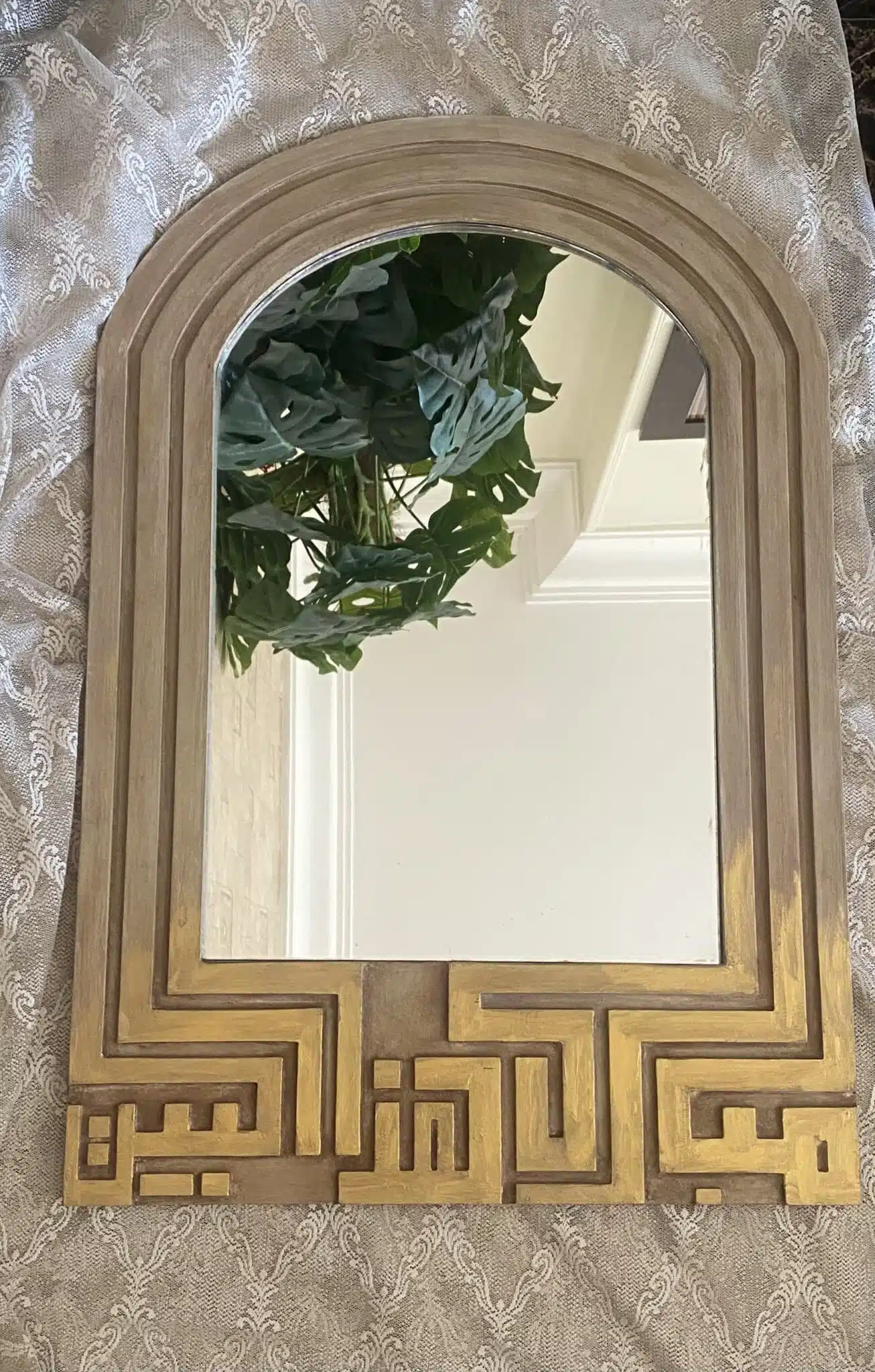 Arabic Design Wall Mirror “مبارك هذا البيت” in vintage beige xgold
