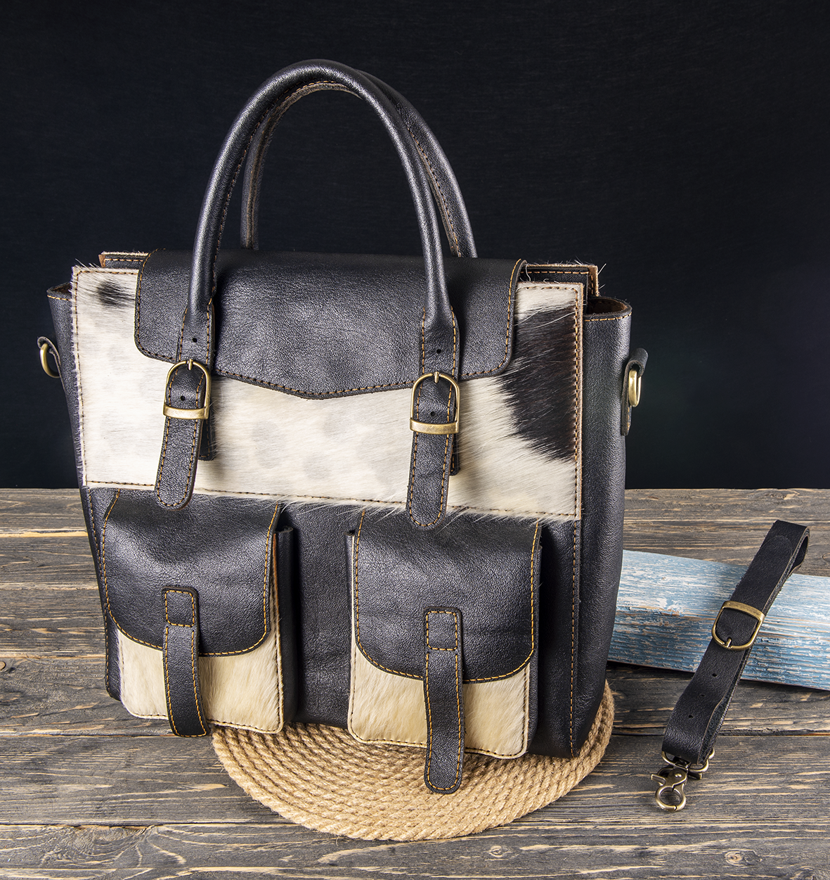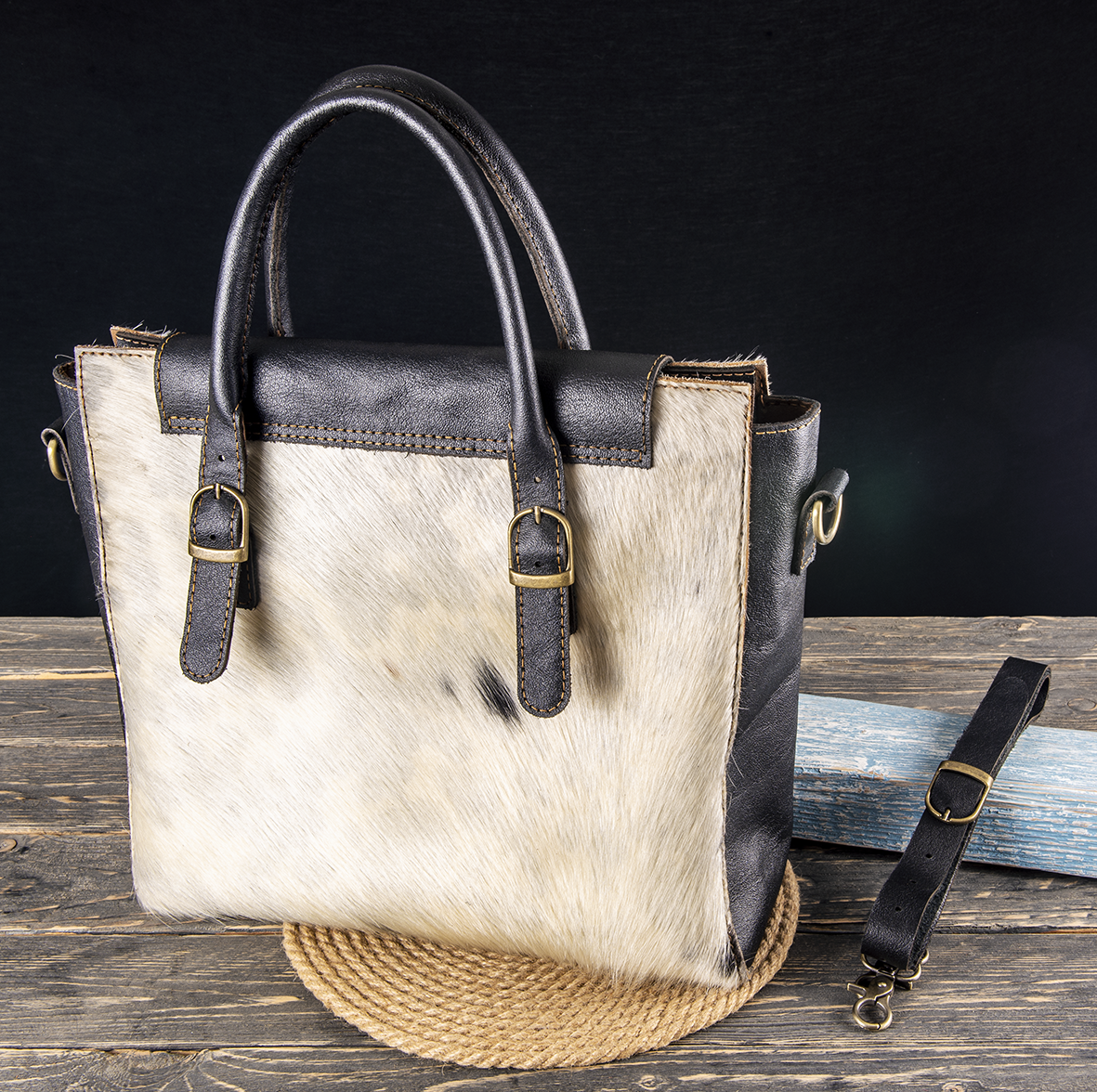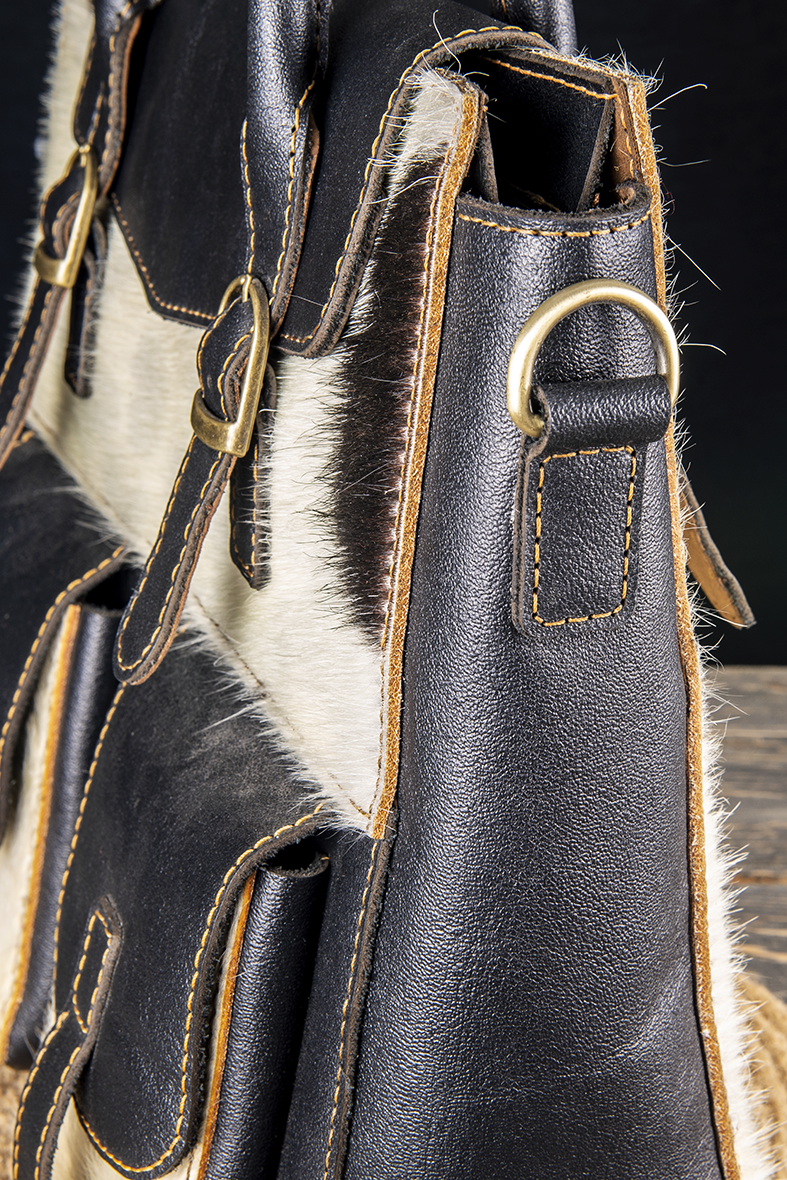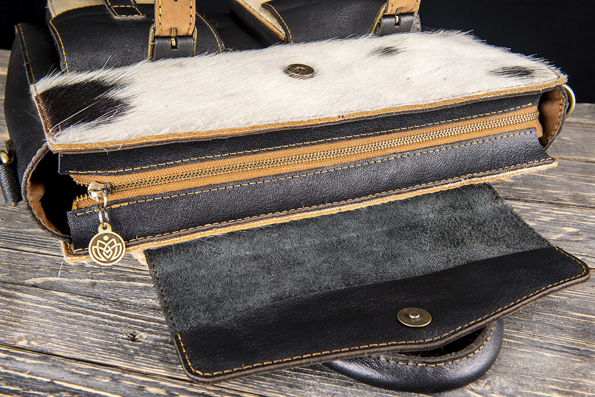 Natural Hair-on Cowhide: Provides a unique, striking texture with natural white and black patterns, ensuring that no two bags are exactly alike.