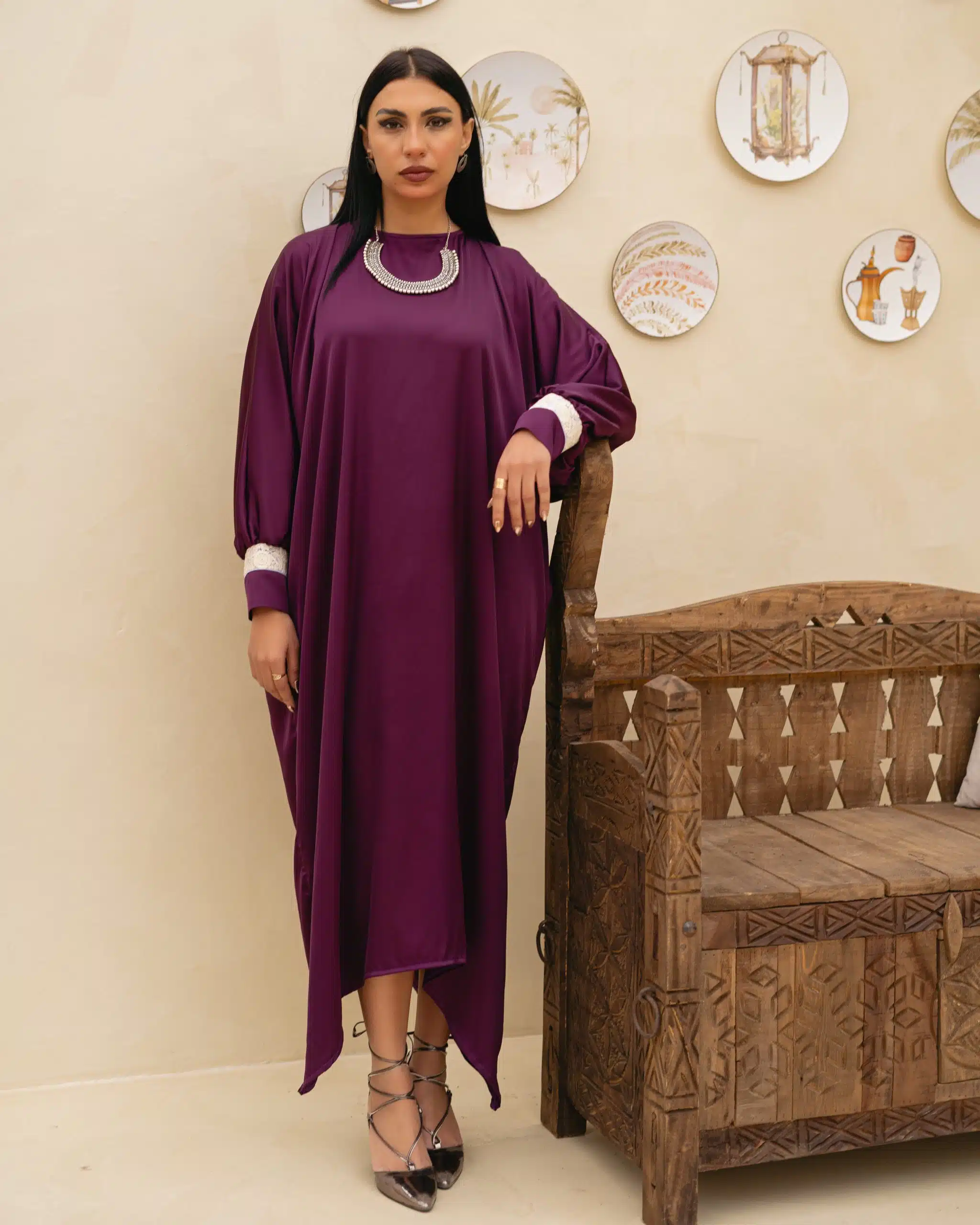 - flared kimono style sleeves