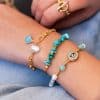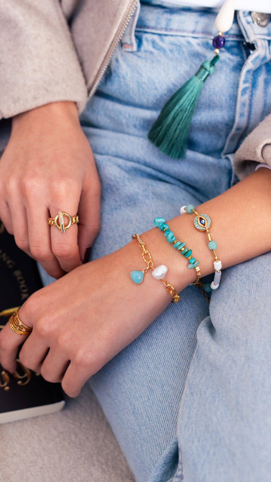 A set of bracelets combining turquoise, pearl, and evil eye beads in an elegant design perfect for everyday wear. A simple detail to complete any look.