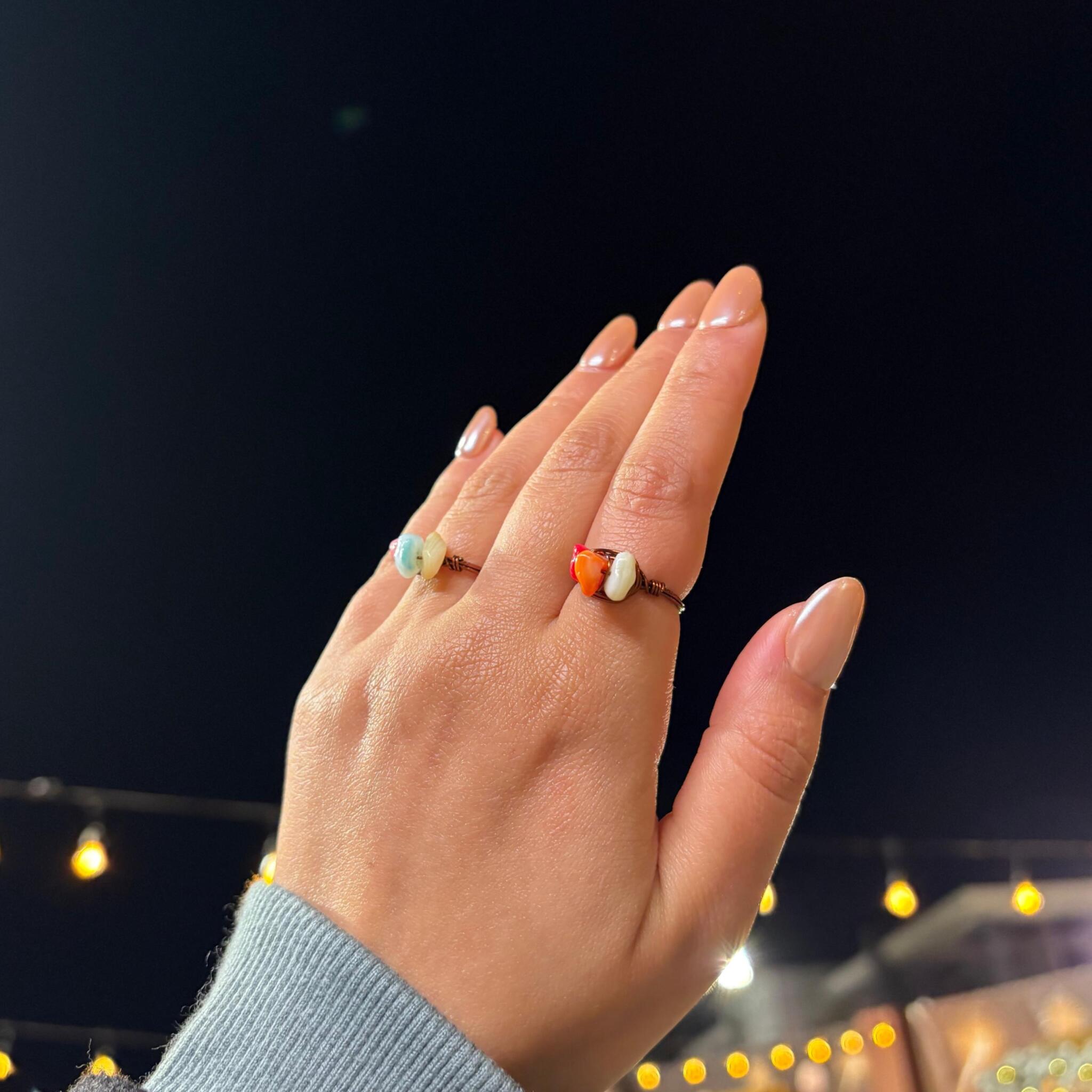 Hand made wire german Silver / Red copper ring ring with agate stone won’t ever change color