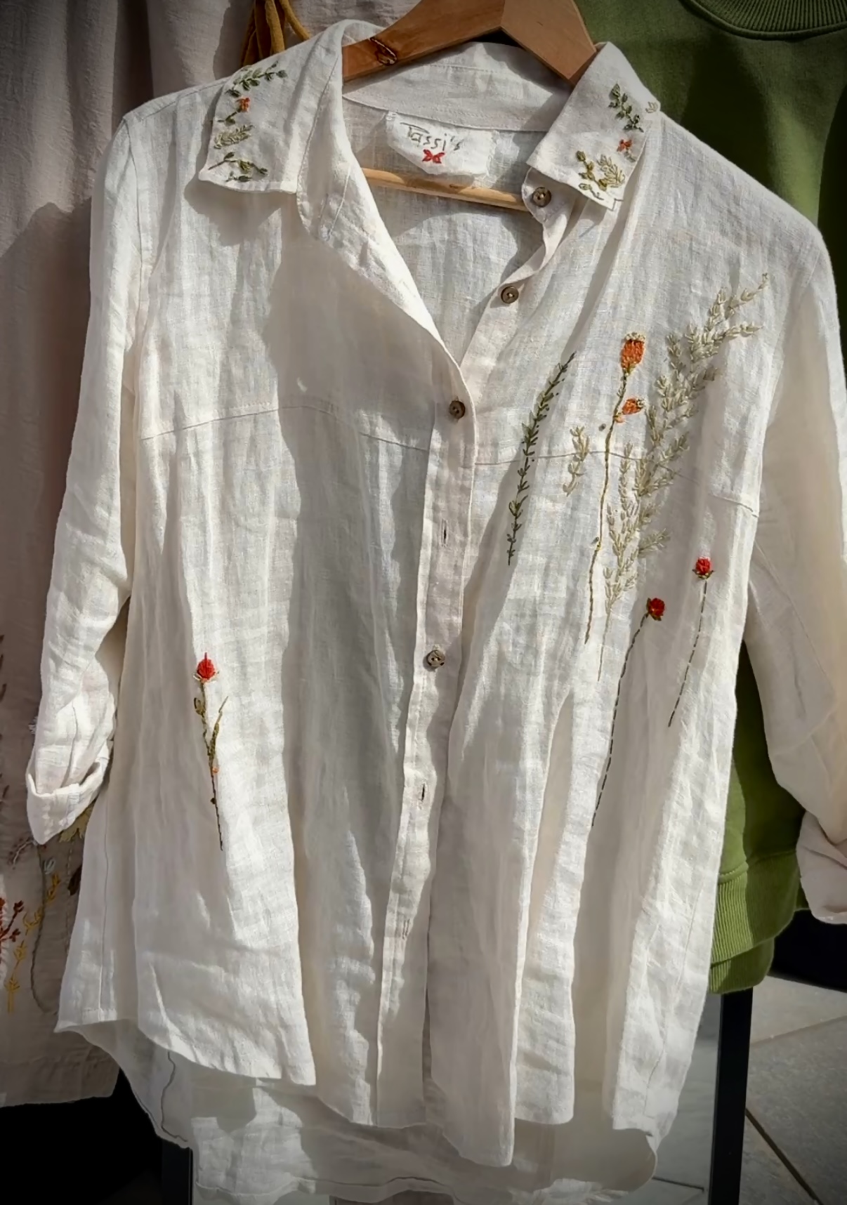 - Hand-embroidered on pure linen fabric