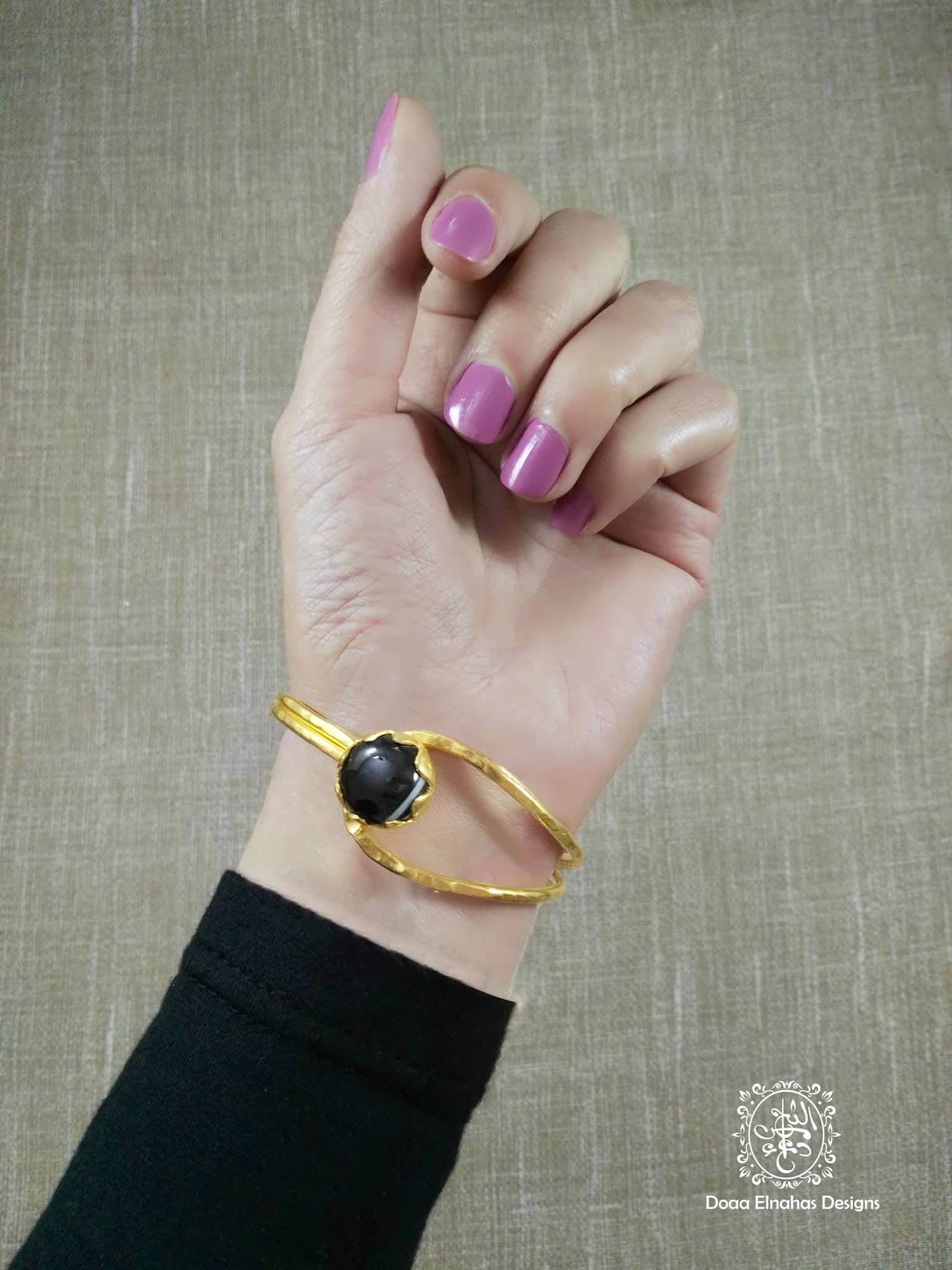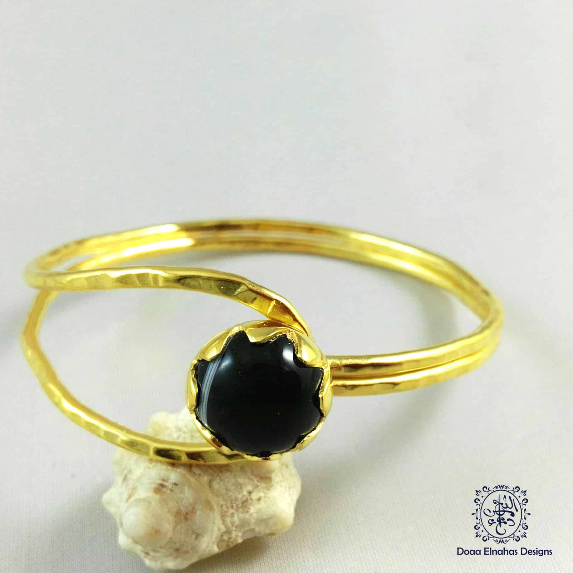 Gold-plated brass Bracelet +onyx stone