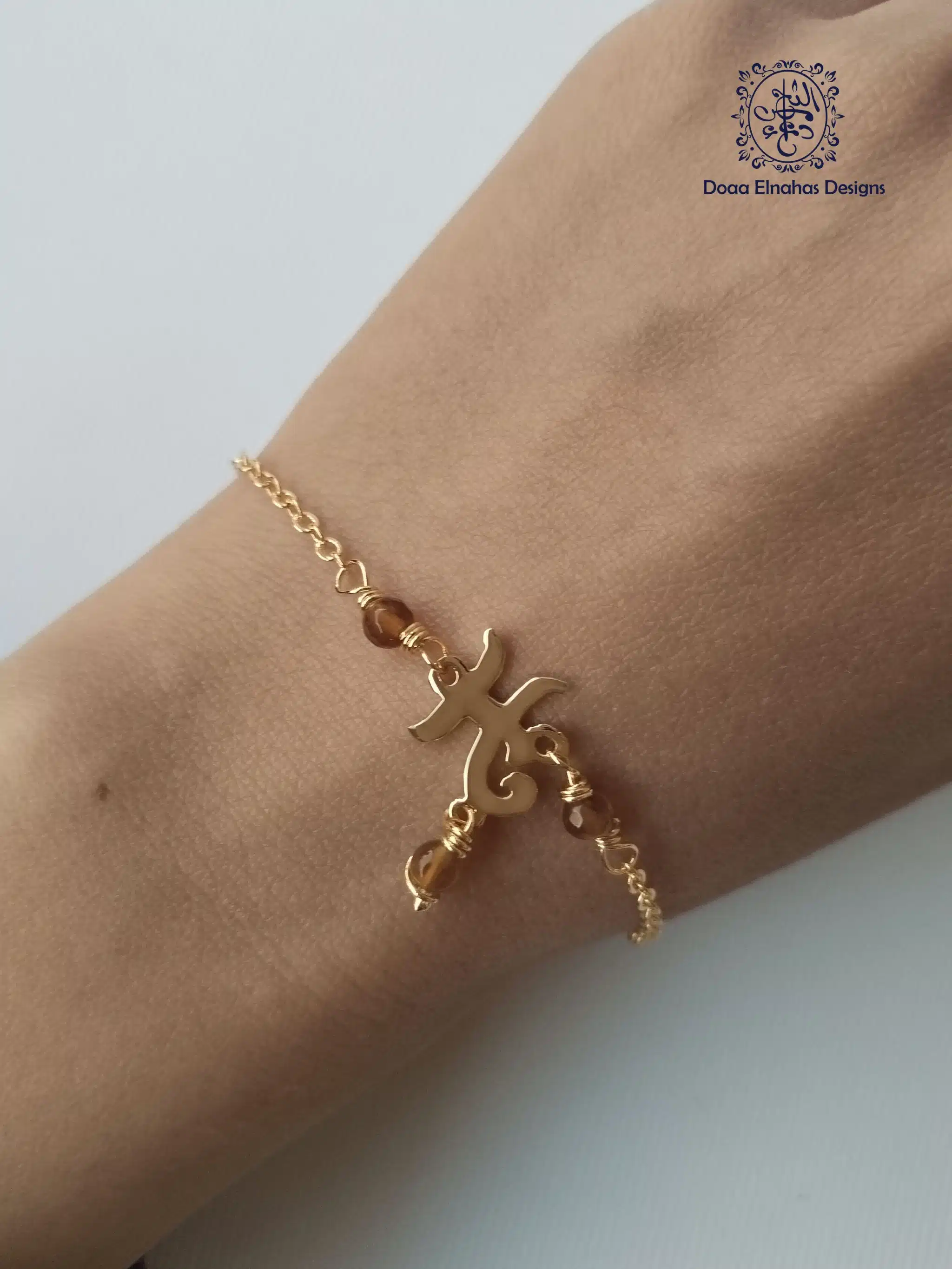 Gold-plated brass bracelet with agate stone + letter H