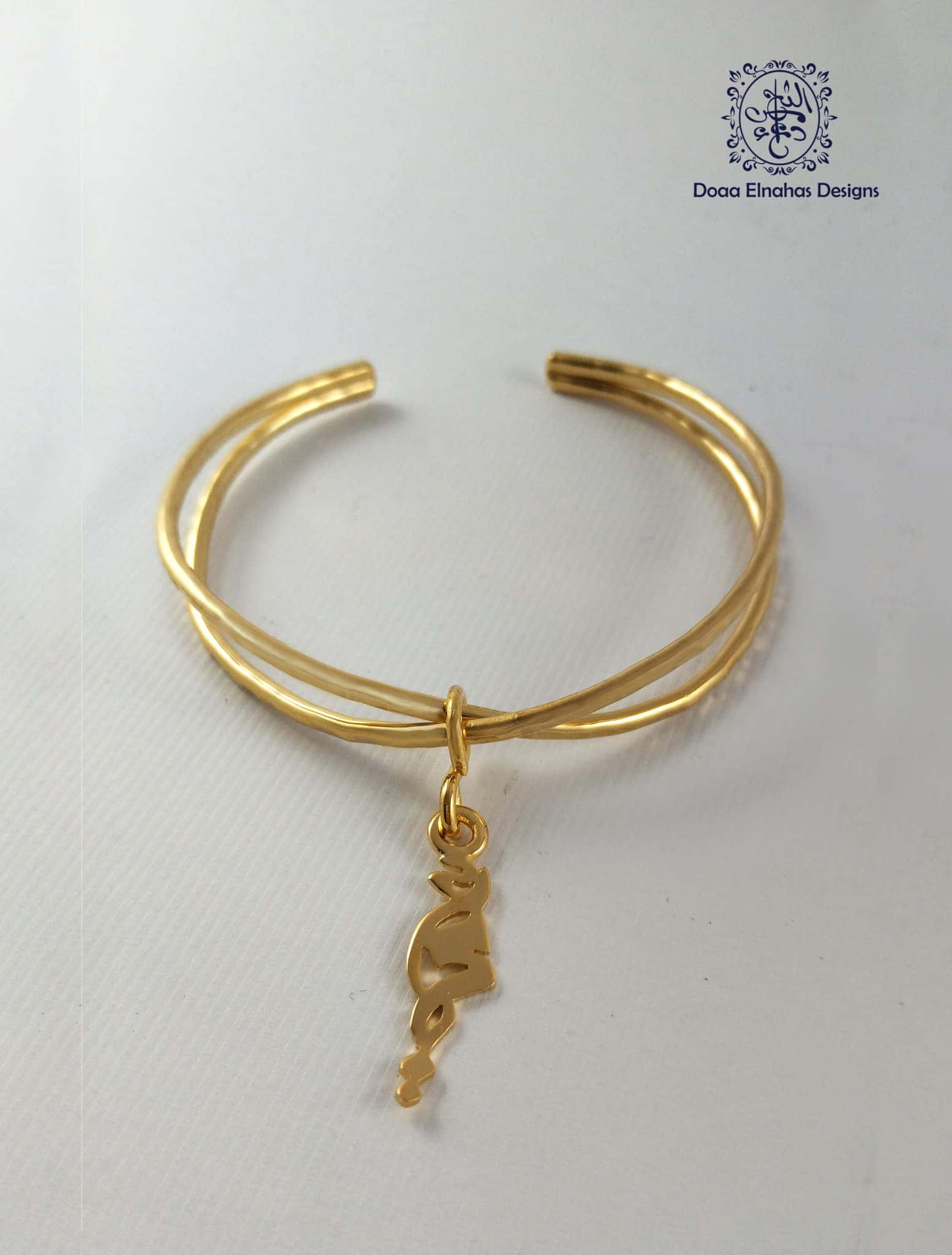 Gold-plated brass bracelet with Arabic calligraphy “أمي”