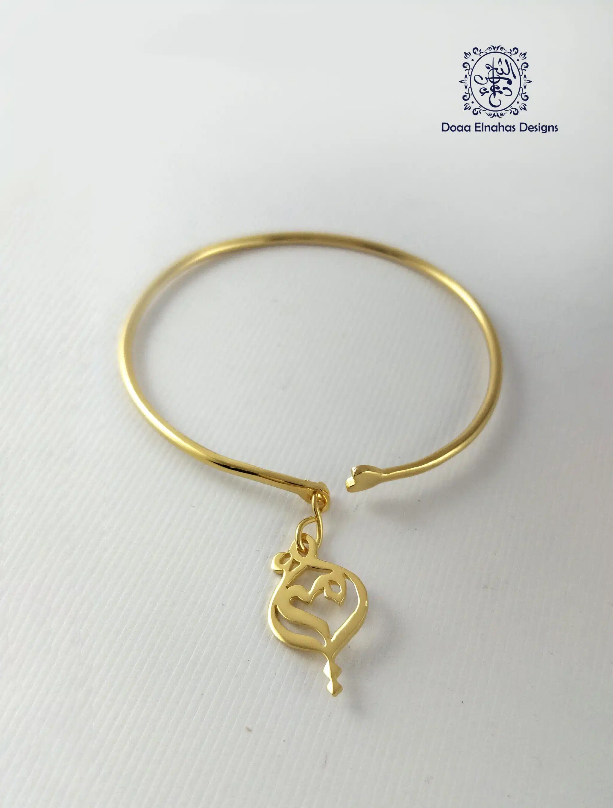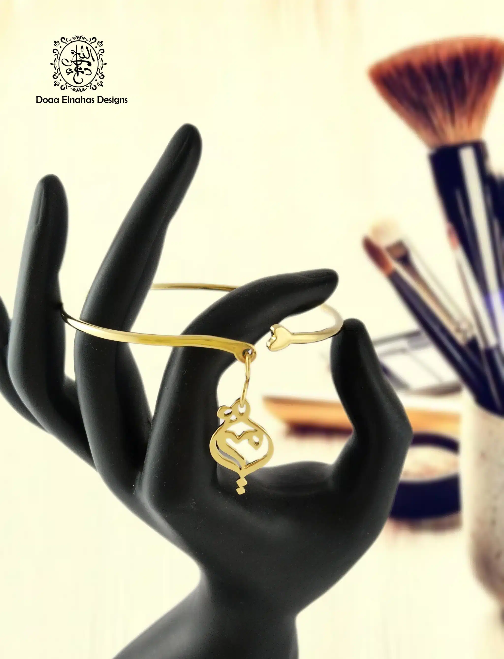 Gold-plated brass bracelet with Arabic calligraphy “أمي”