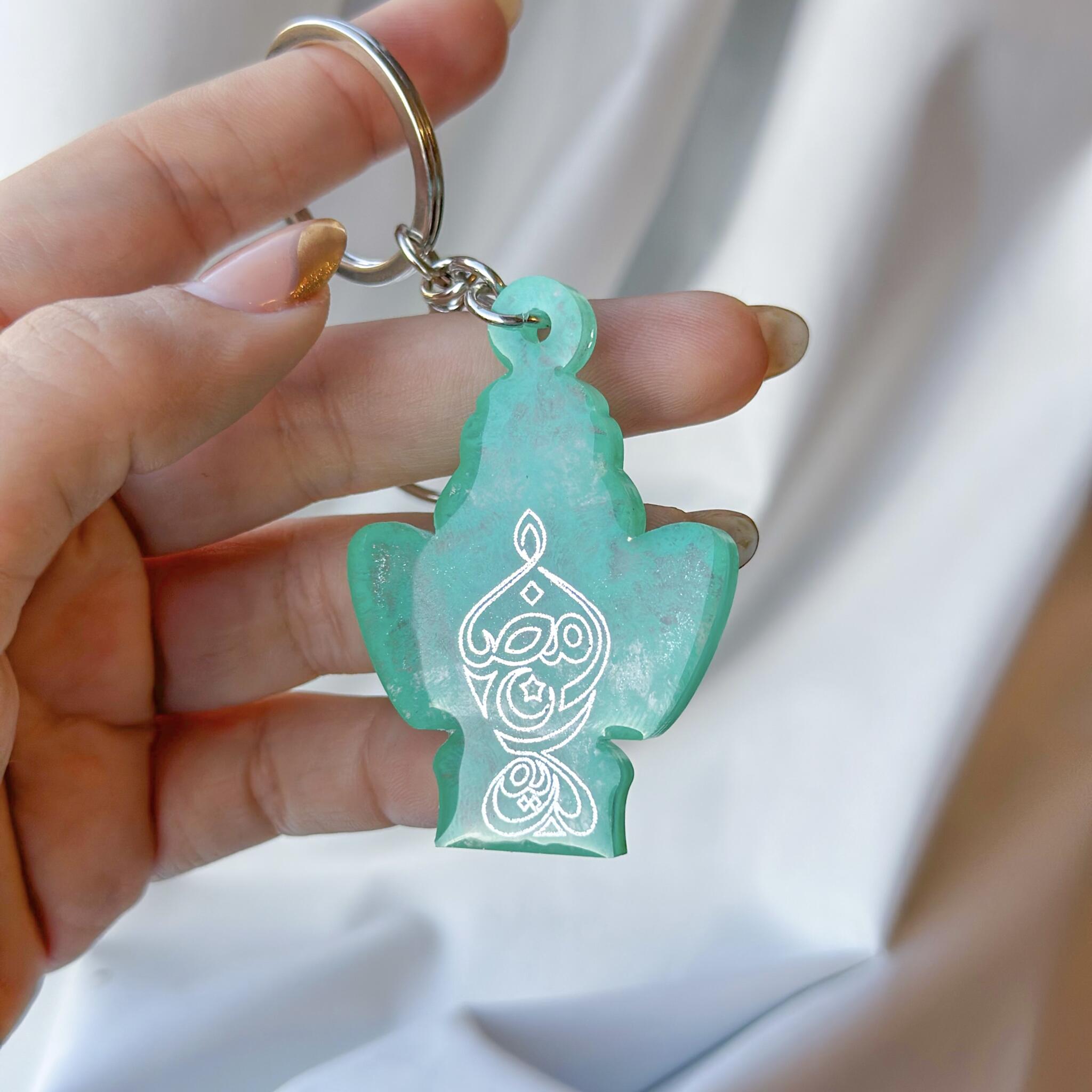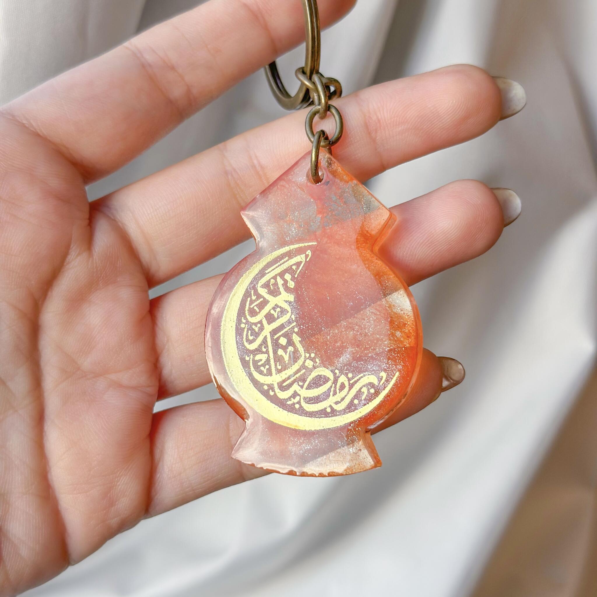 These handcrafted resin keychains are a perfect blend of culture, color, and craftsmanship. Each piece showcases beautiful Arabic calligraphy, carefully embedded inside glossy resin with a marbled, pearl-like effect that catches the light from every angle.