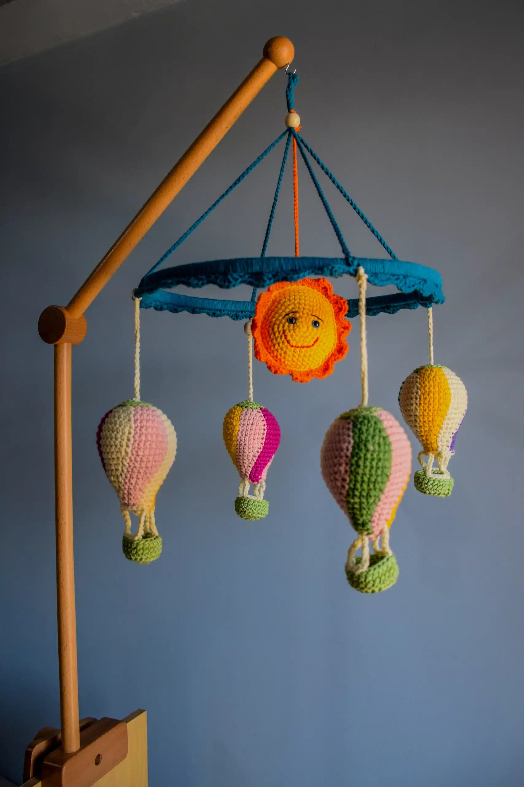 Elevate your baby’s crib with our Balloons Hanging Mobile, a soft and colorful crochet décor piece that soothes and stimulates your little one.