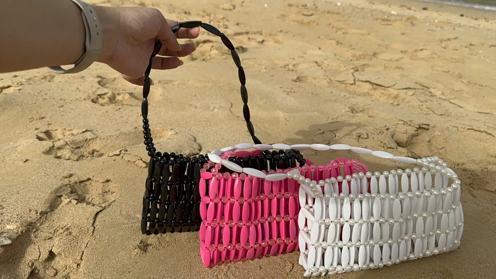 The Barrel Bag is a head-turning statement piece crafted entirely from high-quality acrylic beads. Its unique cylindrical silhouette and glossy finish make it the perfect accessory for sunny days, stylish nights, and everything in between.