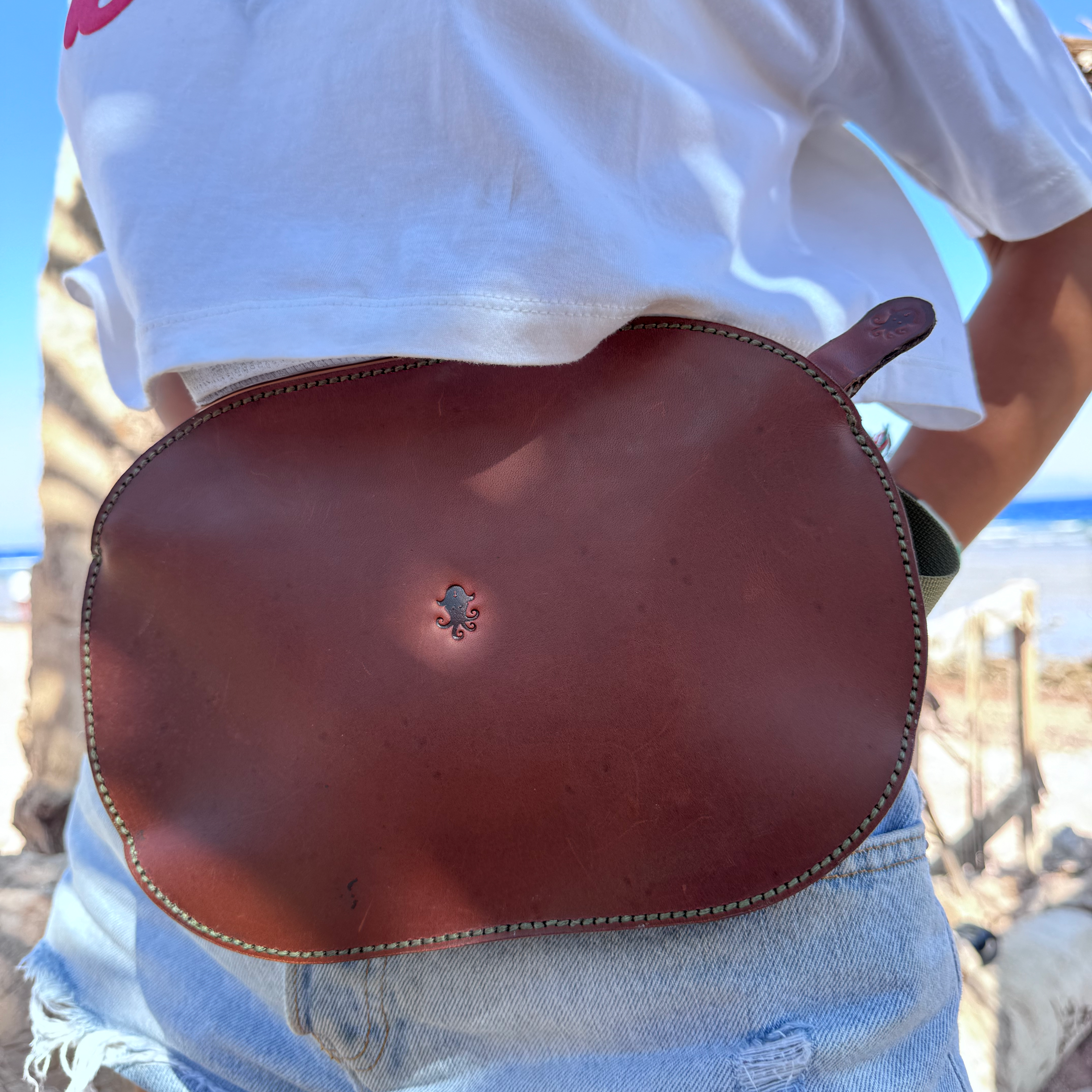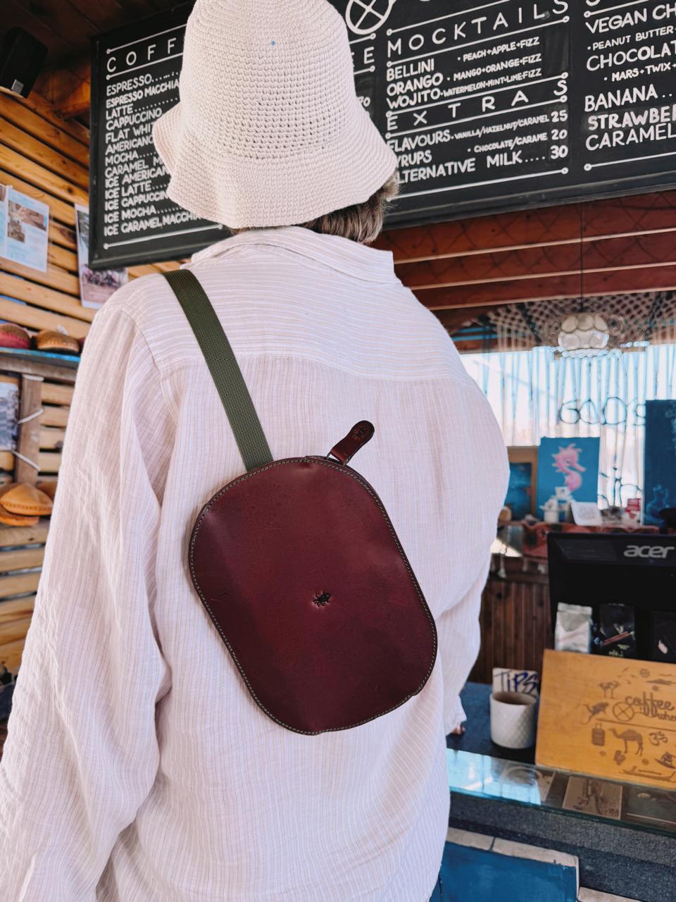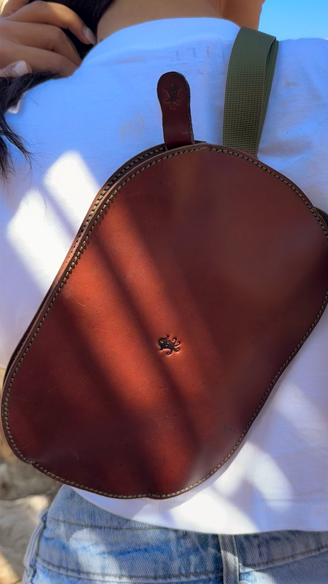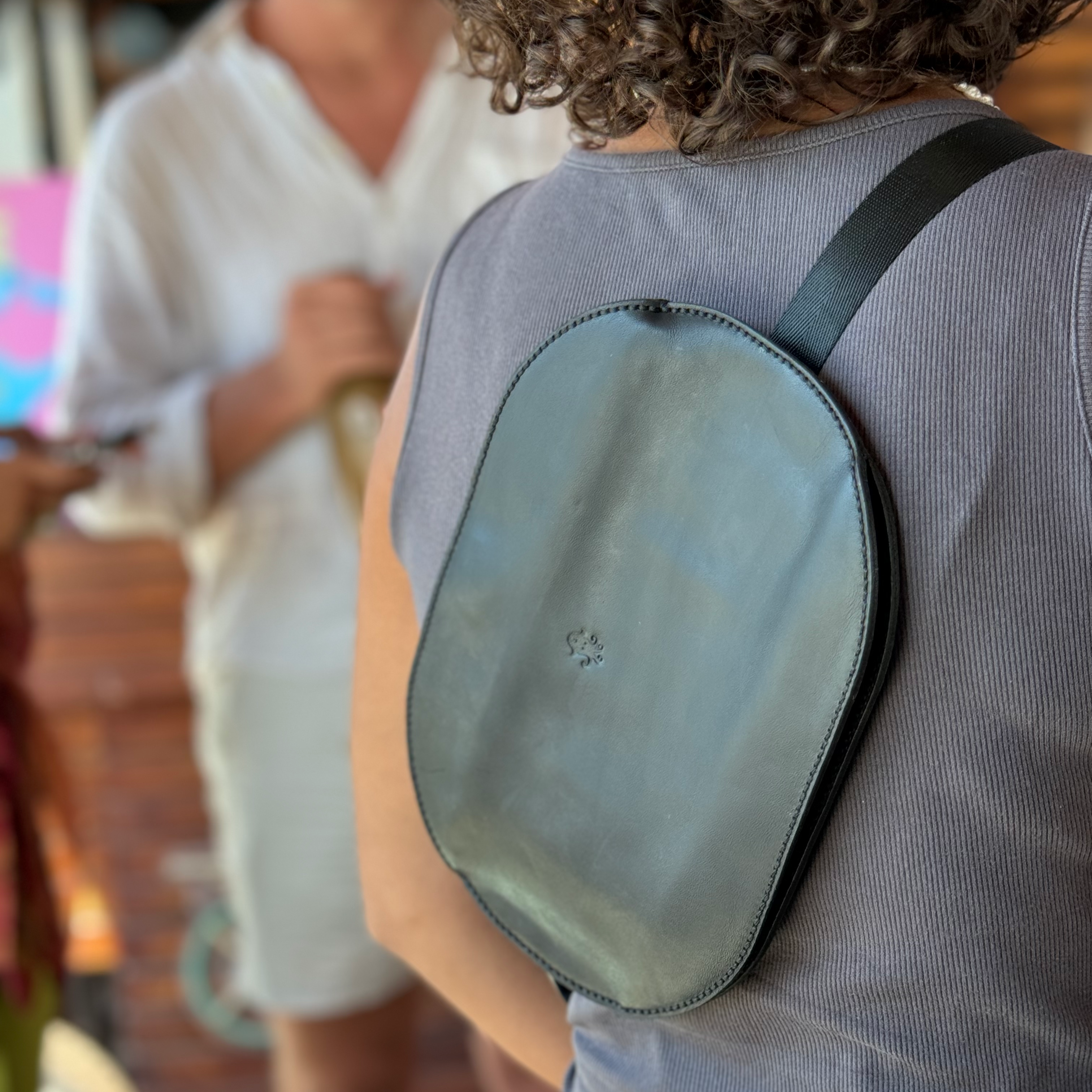 A compact, hands-free bag handcrafted from premium full-grain leather.