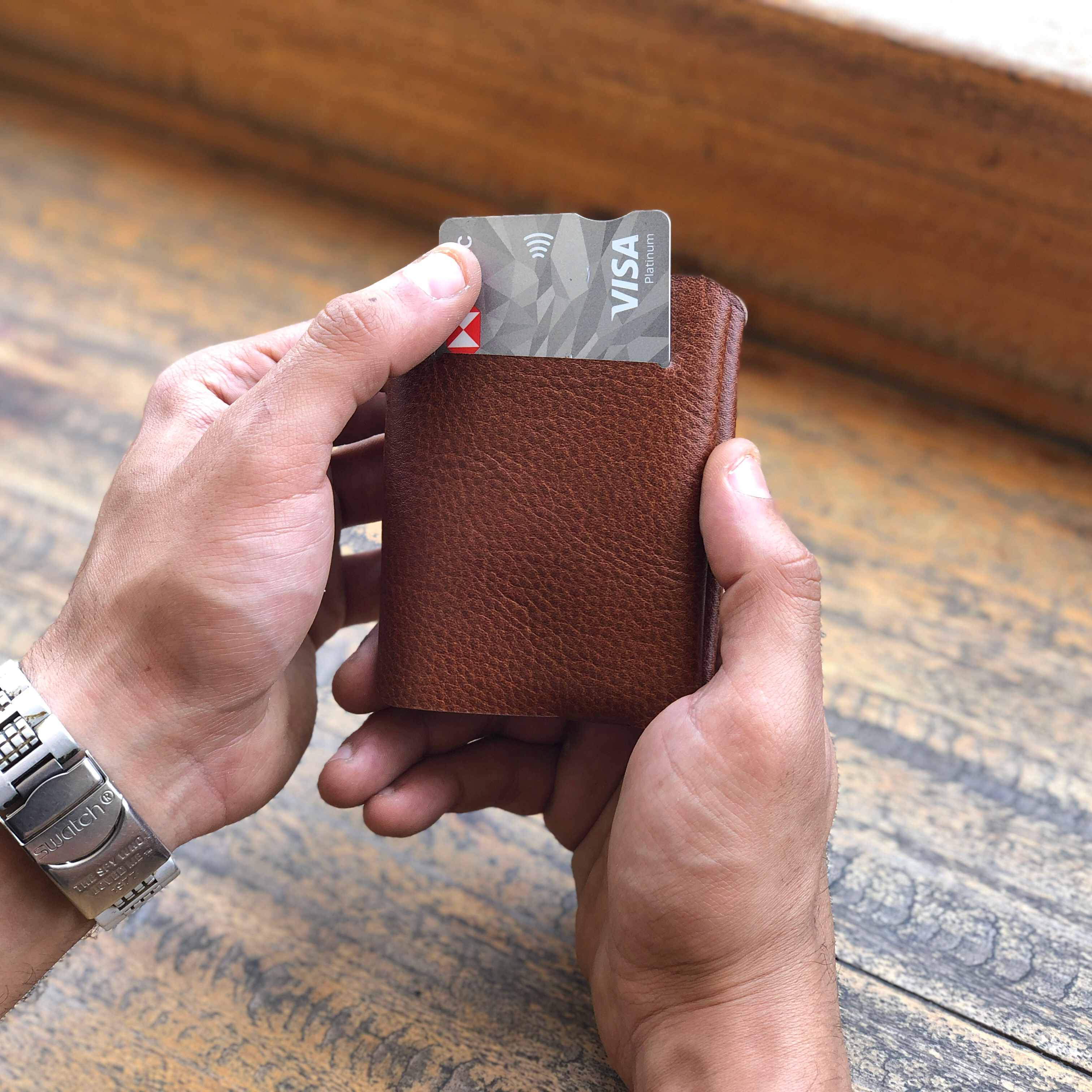 Designed with four storage spaces to carry 3–12 cards and folded cash.